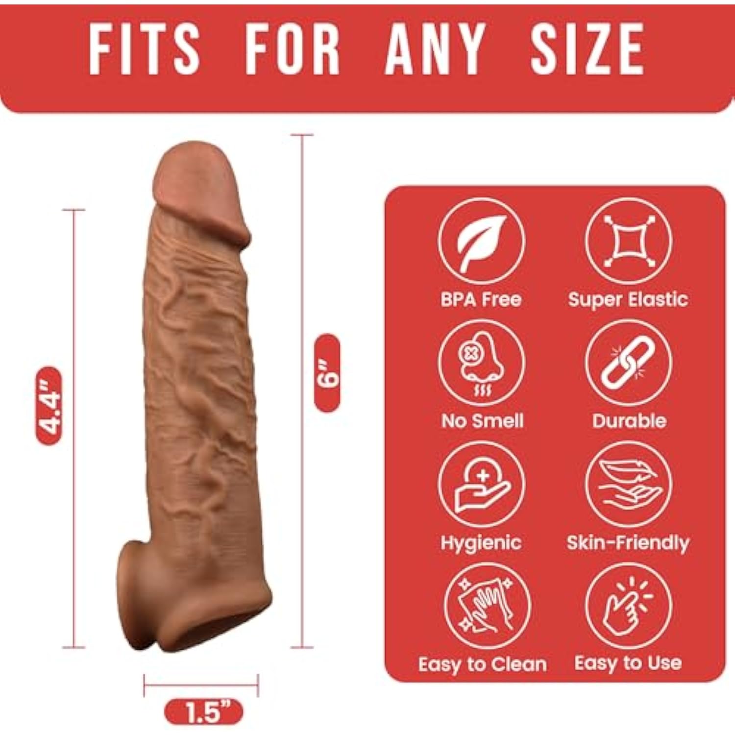 Penis Sleeve Extender Cock Sleeve Extension Sheath Silicone Penis Ring Enlarge Thicken Reusable Realistic Condom Enlarger Male Sex Toy for Men Couples (6")