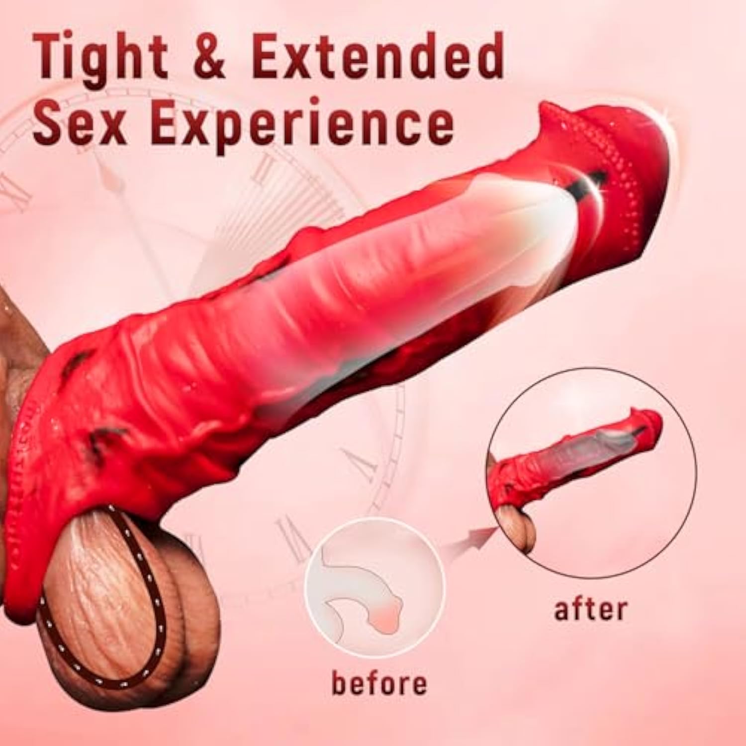 Penis Sleeve Extender With Cock Ring, Realistic Girth Enhancer For Men, Silicone Penis Sheath For Sex, G-Spot Stimulation Sleeve, Thick Male Extender Sleeve, Body-Safe Silicone Sex Toy (T203-F)