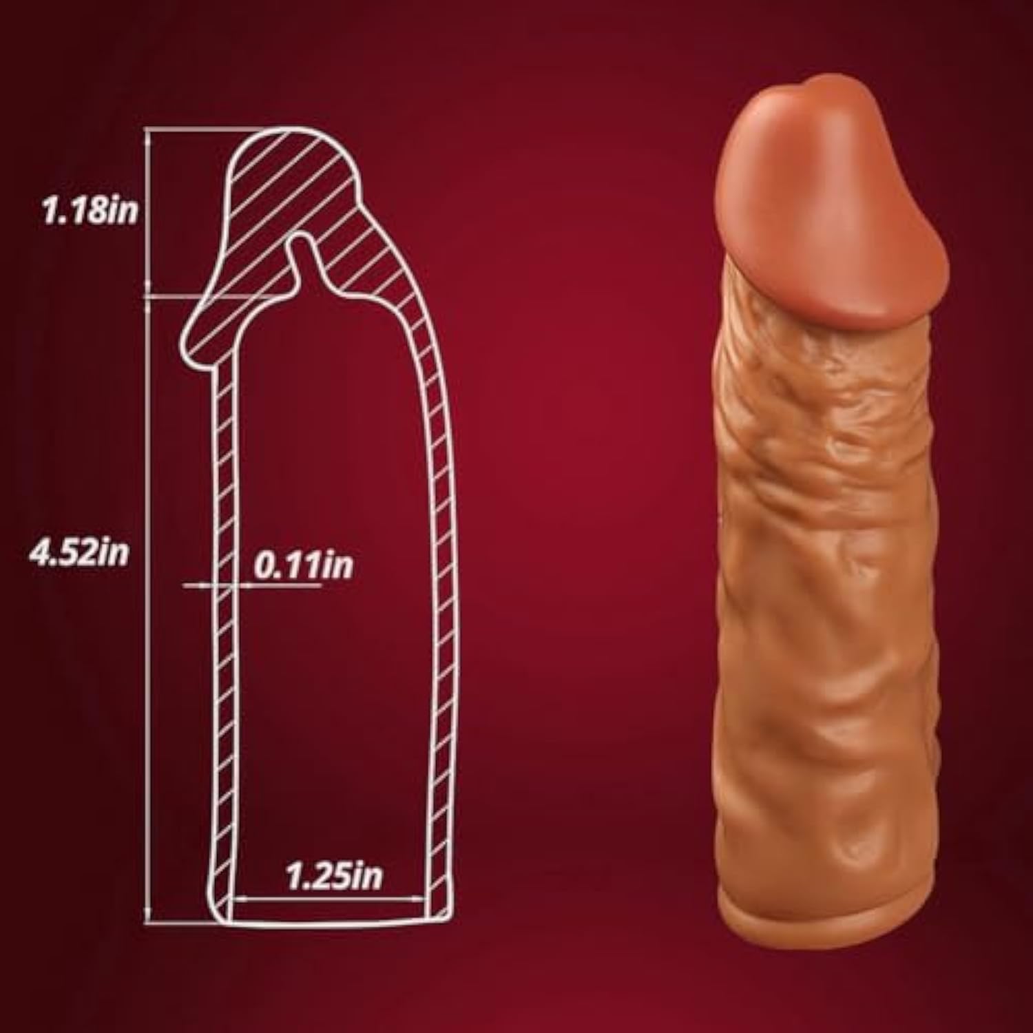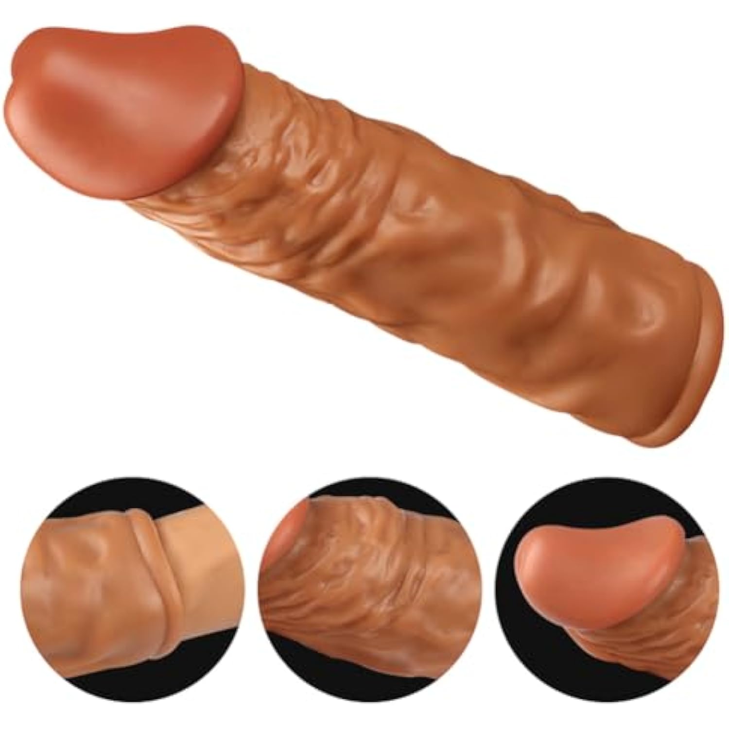 - Ultra Realistic Penis Design: The Penis Sleeve Is So Real, With The Same Color As Skin Color, Like A Real Penis Glans-Like Top, Bumpy Folds And Wrinkles Like Sinuous Coiled Sinews And Veins. When You Touch It Gently, It Is Like Touching Real Skin. Every