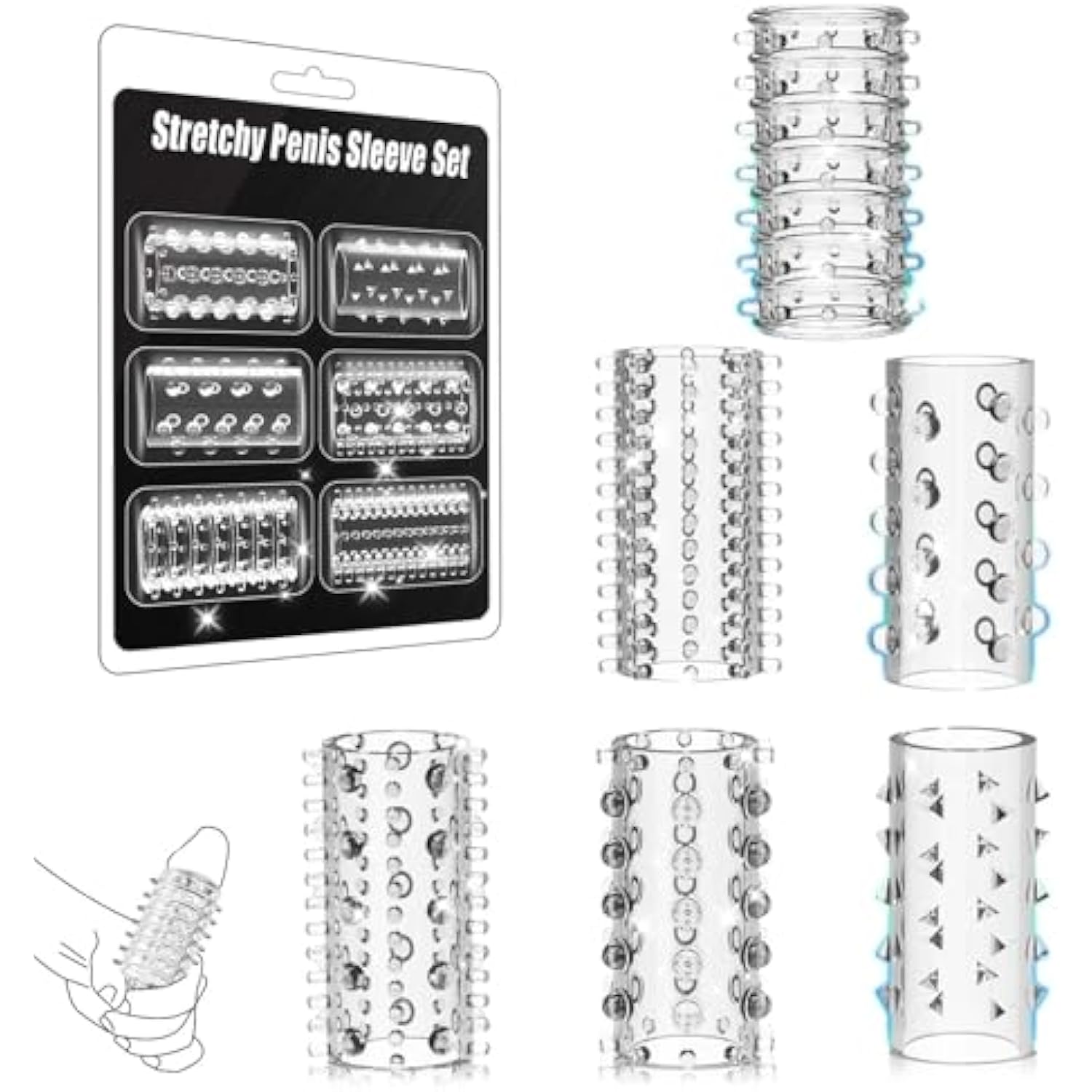 Penis Sleeve, Pennis Extender 6 Stretchy Textured Set, Cock Sleeve Enhance Erection Extended Time, Penis Extender For Adult Sex Toys For Men Couple