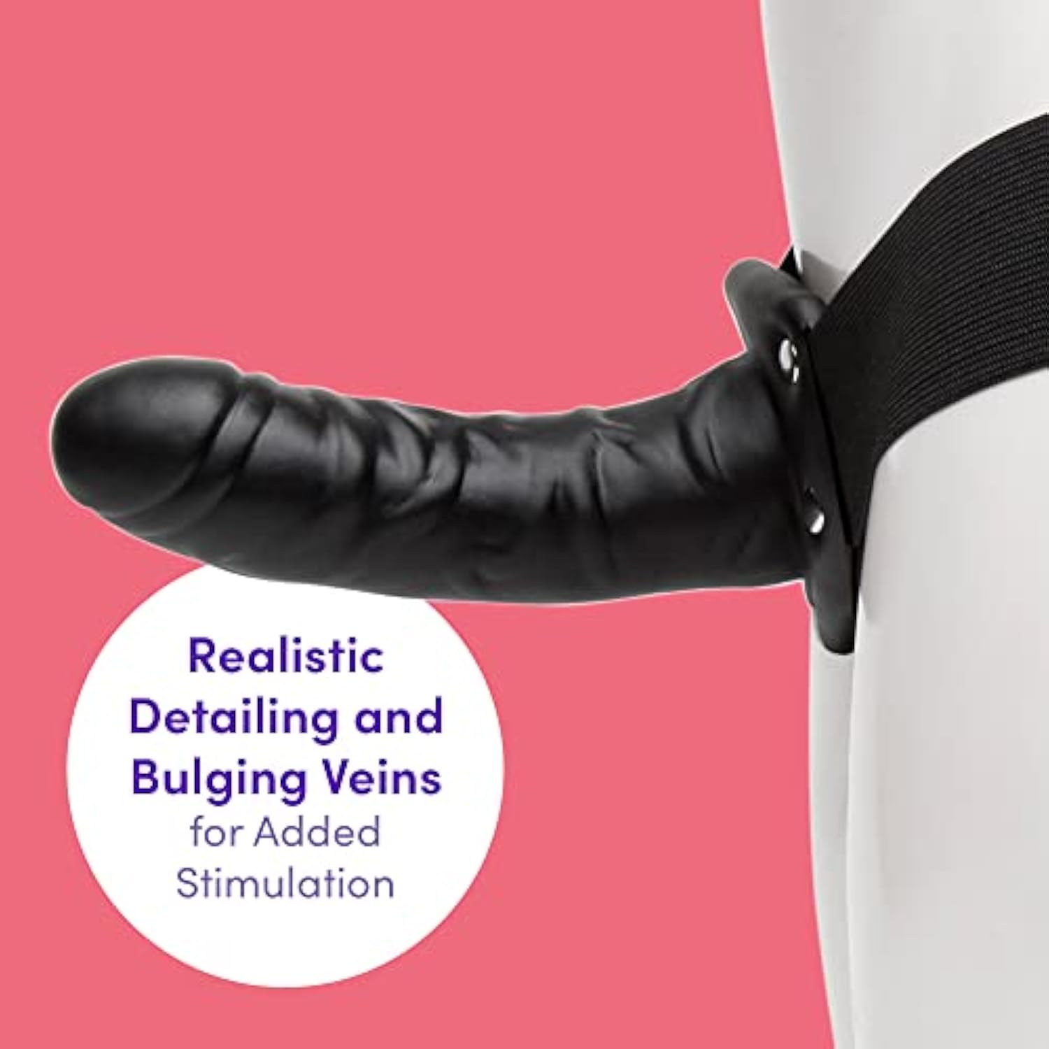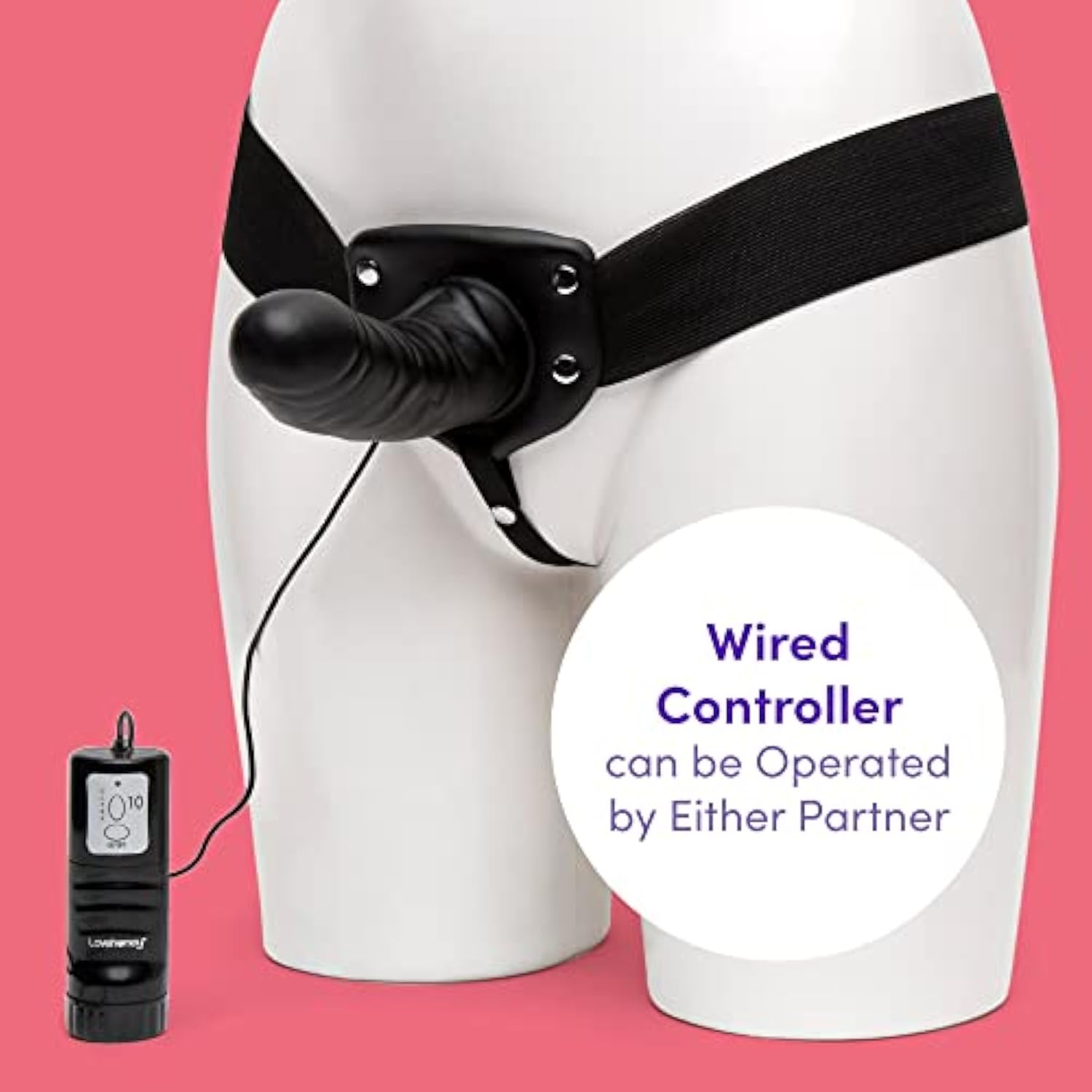 Perfect Partner Vibrating Strap On Dildo - 6 Inch Realistic Strap On For Pegging - Thick Elastic Waistband Holds Wired Remote Control - 3 Speeds & 7 Vibration Patterns - Black