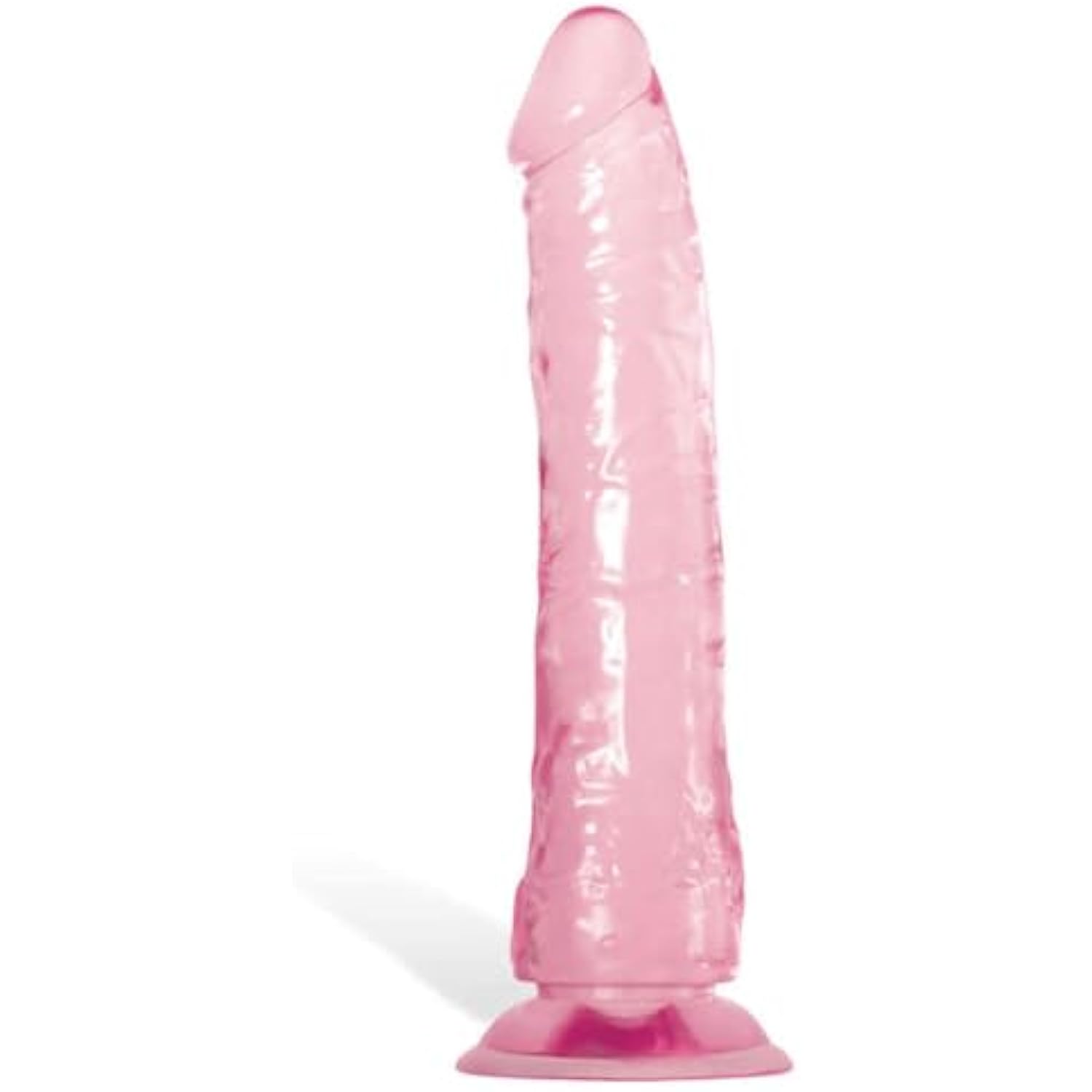 Pink Jelly Realistic Dildo Suction Cup Base Hands Free Play Flexible Shaft Textured Veins For Added Stimulation Harness Compatible Waterproof Beginner And Couples Friendly 8.25 Inch