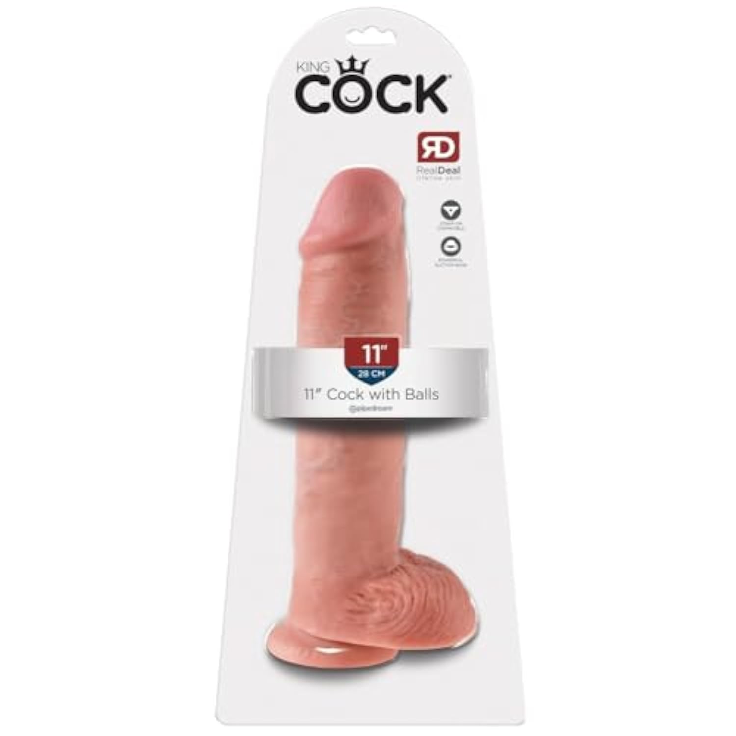 | Uses Fanta-flesh that feels so real you will forget it’s not the real thing | | Comes with a powerful suction cup base that sticks to nearly any flat surface | | This 11inch rock-hard stud is always ready and willing to go whenever you are | | The cup base also makes every dildo harness compatible | | Every King Cock is phthalate-free, latex-free, body-safe, and hypoallergenic | |