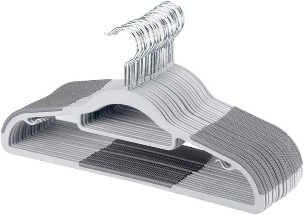 Plastic Clothes Hangers, Upgraded Rubber Stripe Non-Slip Coat Hangers,50 Pack Dry Wet Trousers Pants Hangers,Space Saving,heavyduty Gray