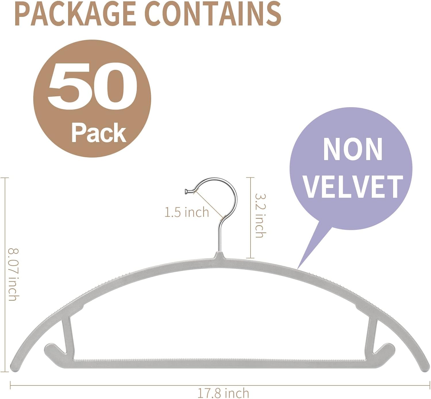 Plastic Hangers 50pack No Shoulder Bump Suit Hangers - Chrome Hooks,Non Slip Space Saving Clothes Hangers, Heavyduty,Rounded Hangers for Sweaters,Coat,Jackets,Pants,Shirts,Dresses Grey Hangers