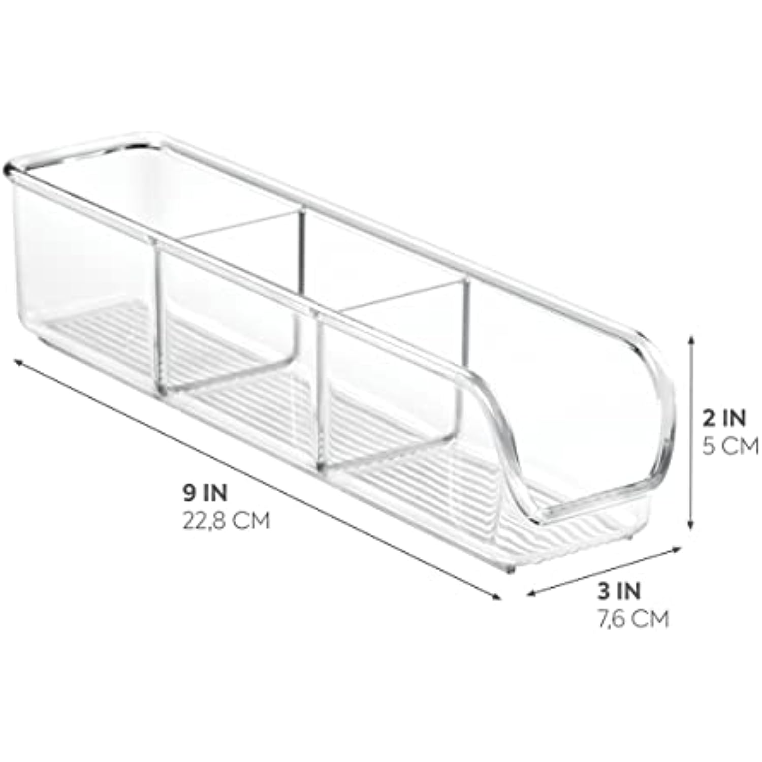 - EFFICIENT SIZE β Whether you use it on its own or with other iDesign kitchen storage containers, stackable storage bins maximize small spaces as a cabinet organizer; measures 2.25" x 9" x 2"