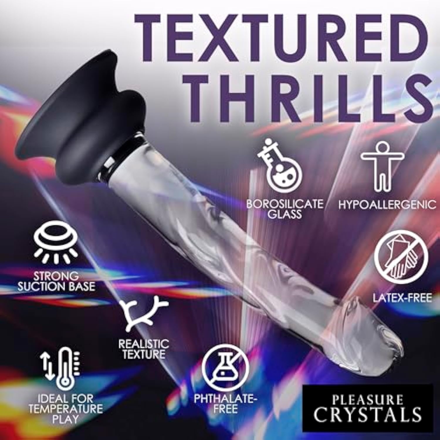 Pleasure Crystals 7" Glass Dildo With Silicone Base For Men, Women & Couples. Realistic Texture, Includes Removable Silicone Suction Cup, Ideal For Temperature Play. 2 Pieces, Clear.