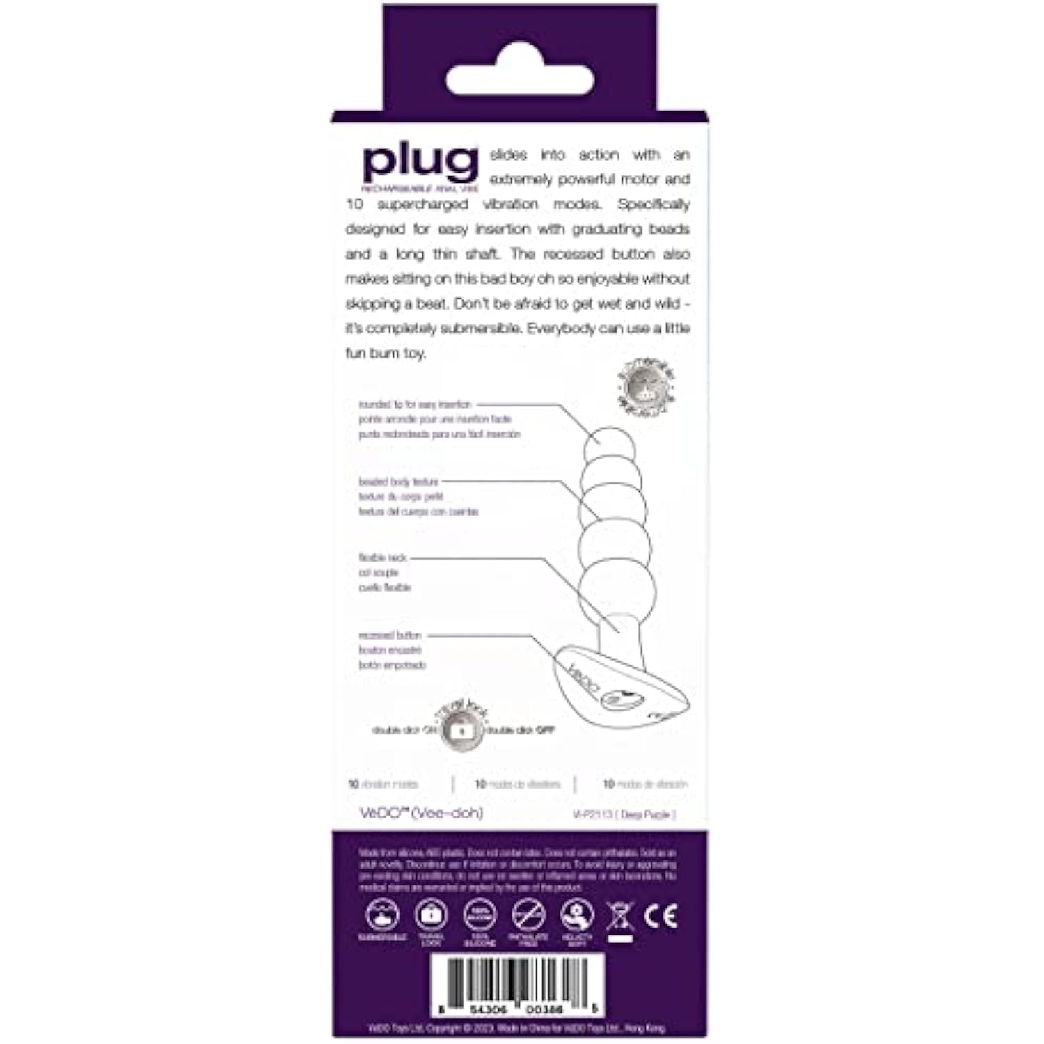 Plug Anal Vibrator, Rechargeable Waterproof Prostate Vibe, Adult Sex Toy, Easy Insertion Round Tip (Purple)