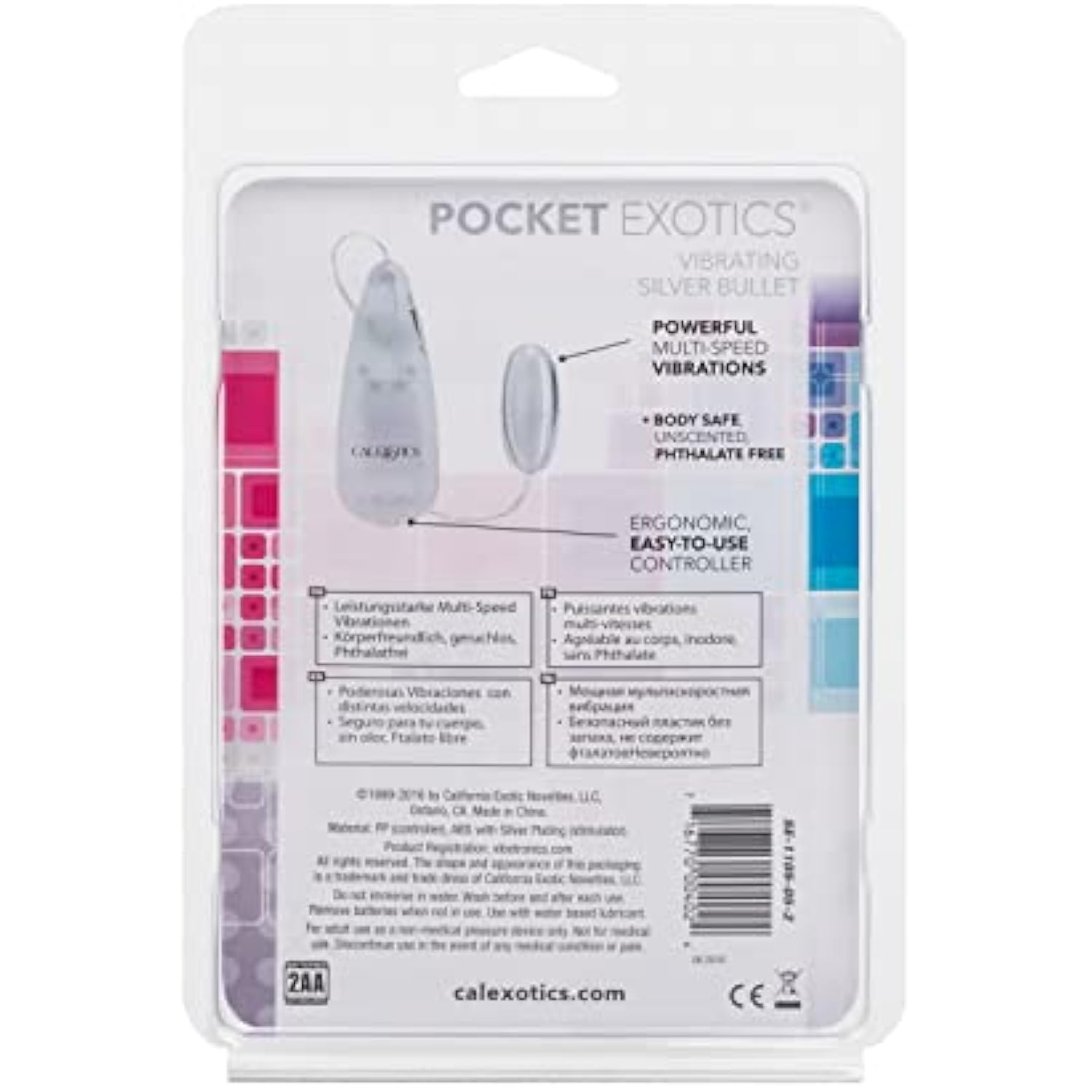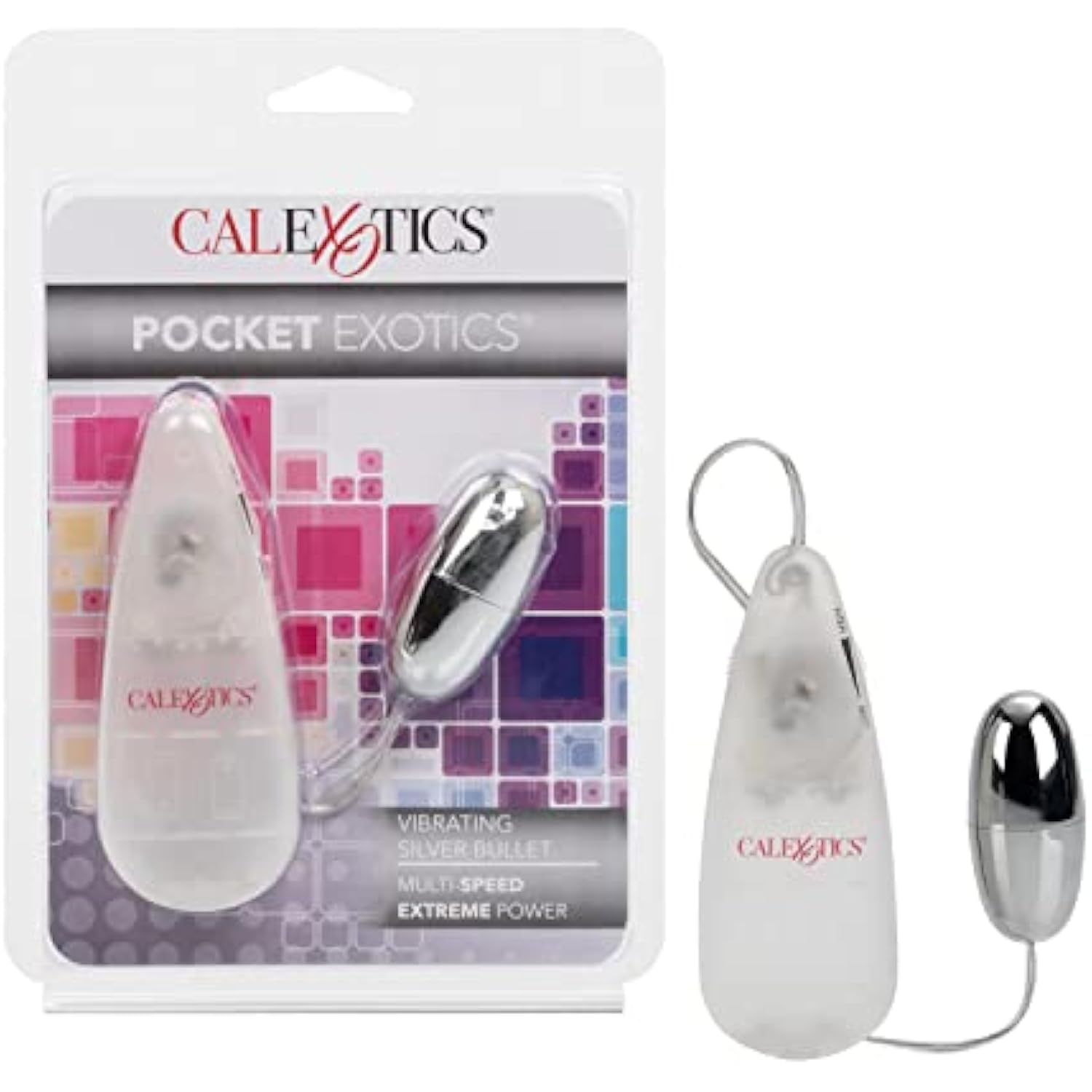 Pocket Exotics Vibrating Silver Bullet Vibrator, Powerful Multiple Speed And Easy Controller, Adult Sex Toy Se-1105-05-2