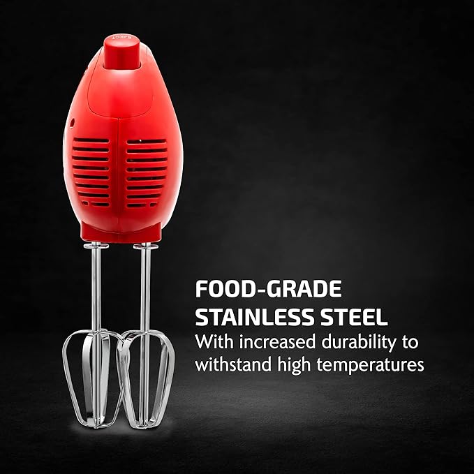 - POWERFUL β Equipped with 120V and 150-Watts of motor power, this hand mixer instantly blends ingredients together seamlessly with its high-quality whisk beaters.