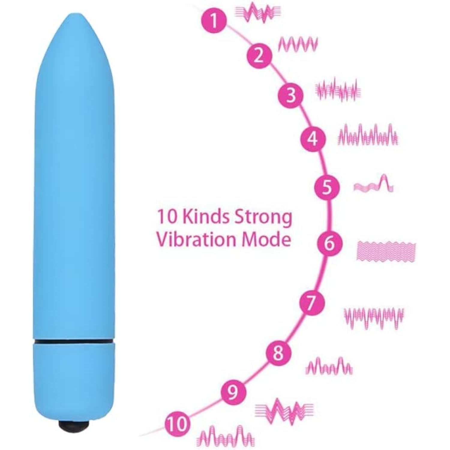 Powerful Bullet Vibrator With 10 Modes, Portable Mini Pocket Vagina Stimulator, Waterproof Super-Strong Adult Sex Toys For Women With Discreet Package (Blue)