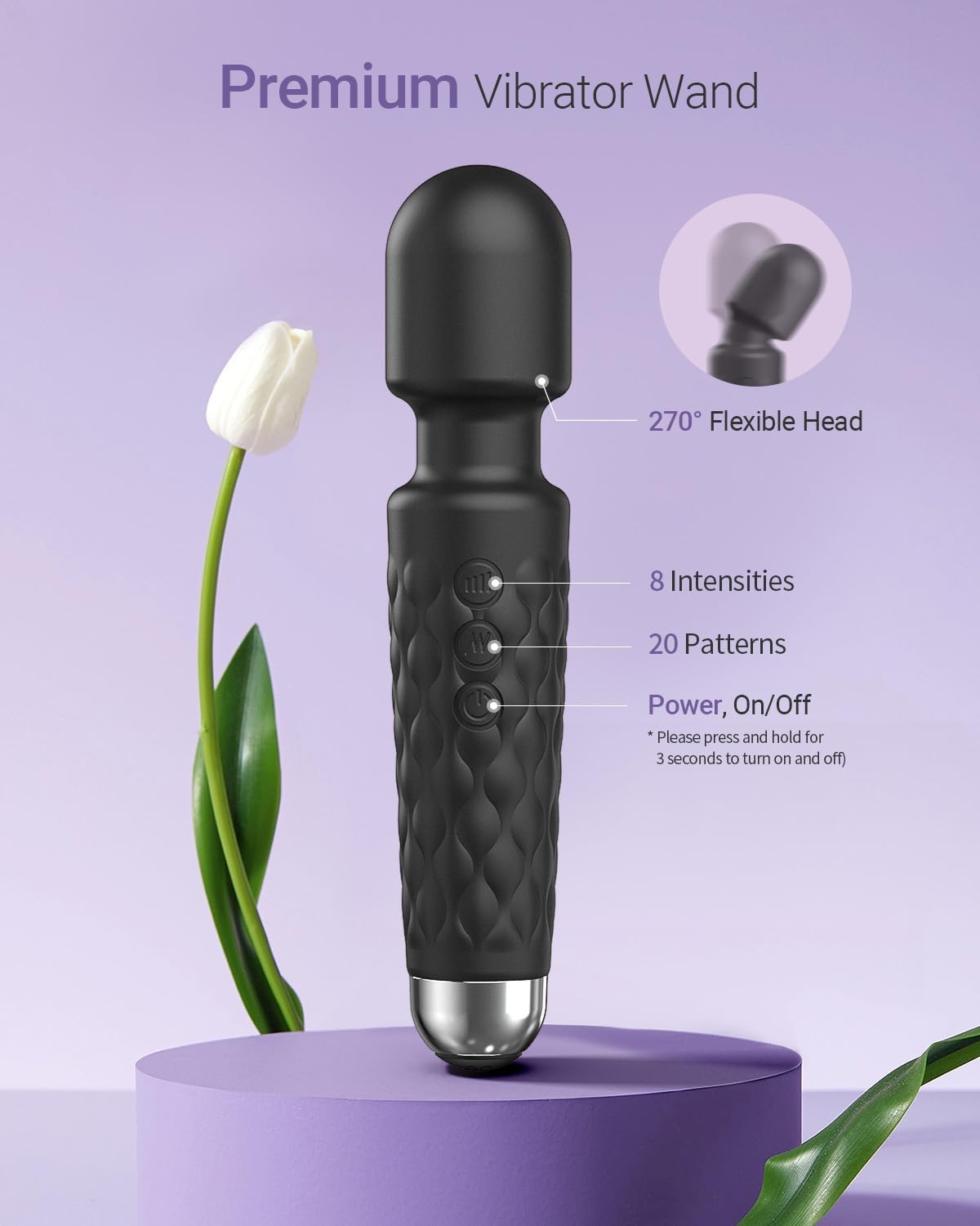 Powerful Wand Massager – 8 Speeds & 20 Patterns, Waterproof Clitoral Stimulator