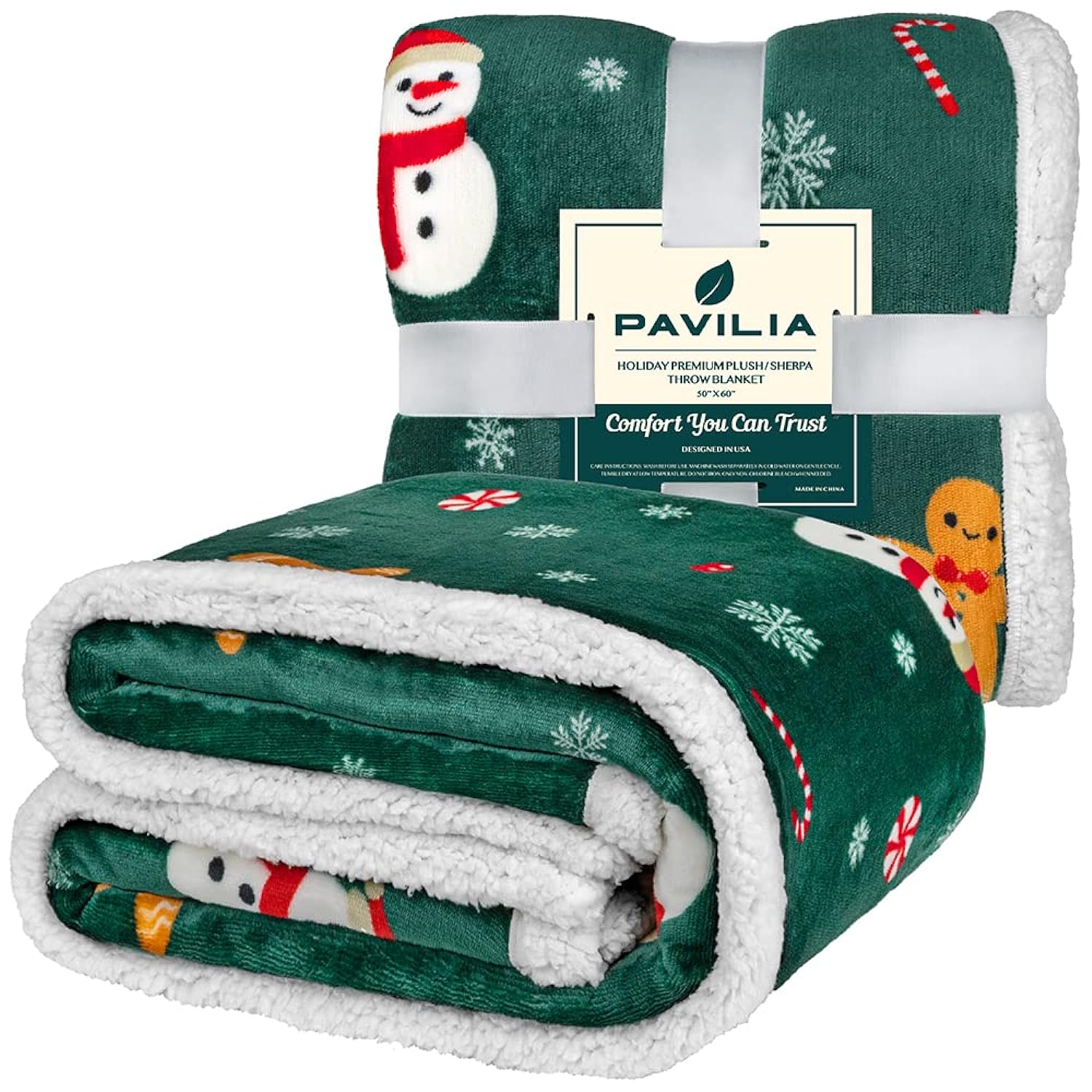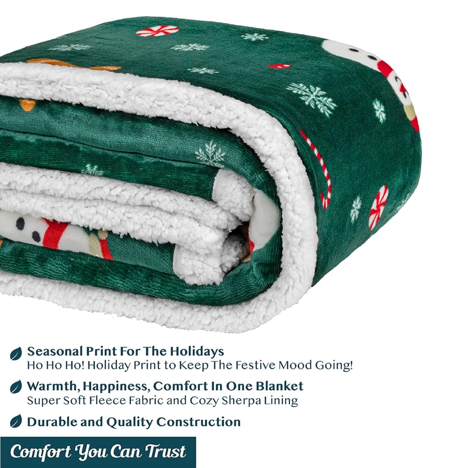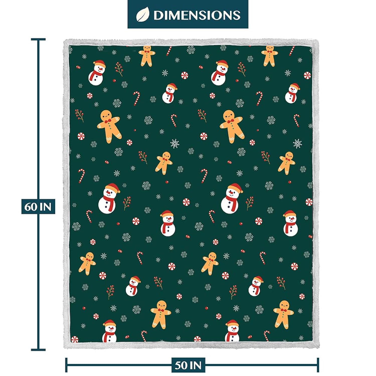 Premium Christmas Sherpa Throw Blanket | Christmas Decoration Gift, Fleece, Plush, Warm, Cozy Reversible Microfiber Holiday Blanket | Green Gingerbread - 50X60
