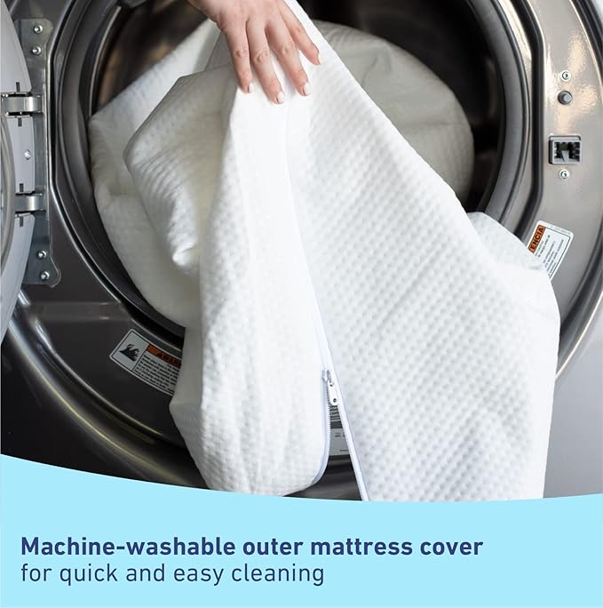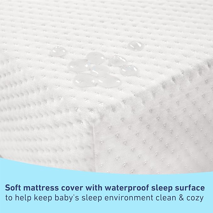 - PREMIUM, WATERPROOF OUTER COVER: Features a premium, ultra-soft (and quiet), easy-to-unzip outer cover that has a waterproof sleep surface; Outer cover is machine-washable for quick & easy care; Ultra-soft cover is quiet for when baby moves around