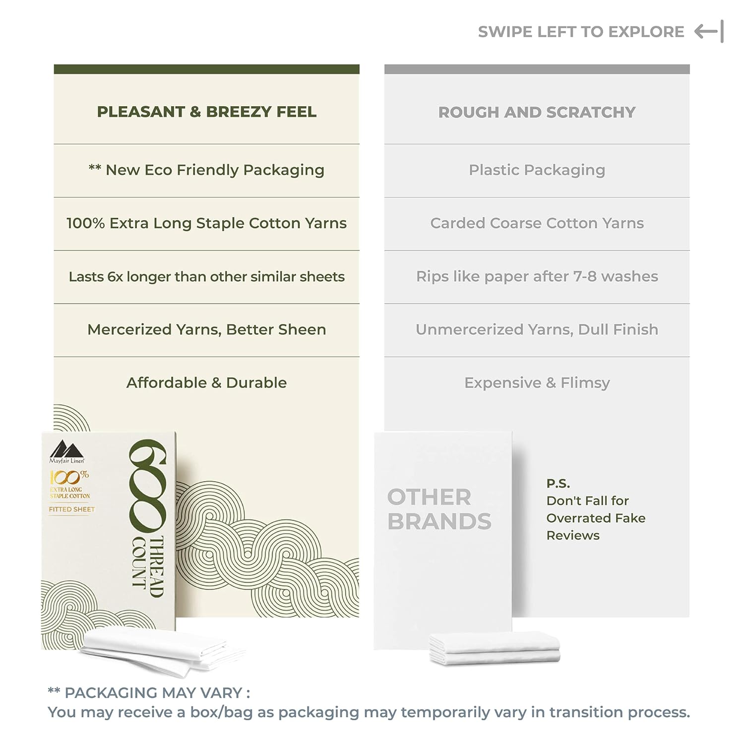 - 6X More Durable Than Other 600 Thread Count Sheets: The Longer The Cotton Fibers, The Softer The Sheets. We Use Extra Long Staple Cotton Fibers With A Sateen Weave To Make The Softest And Most Durable Sheets. We Add One More Step: Mercerization. This Makes Our King Size Fitted Sheets Silkier To Touch, Resistant To Pilling And Fading, And With Improved Dye Quality.