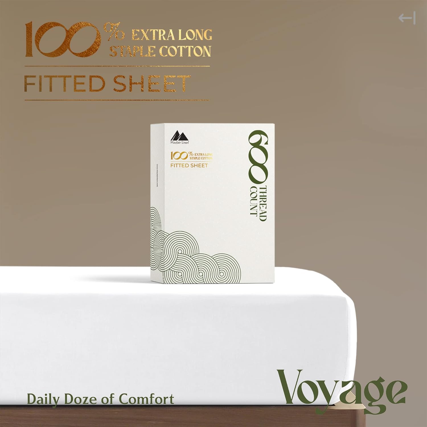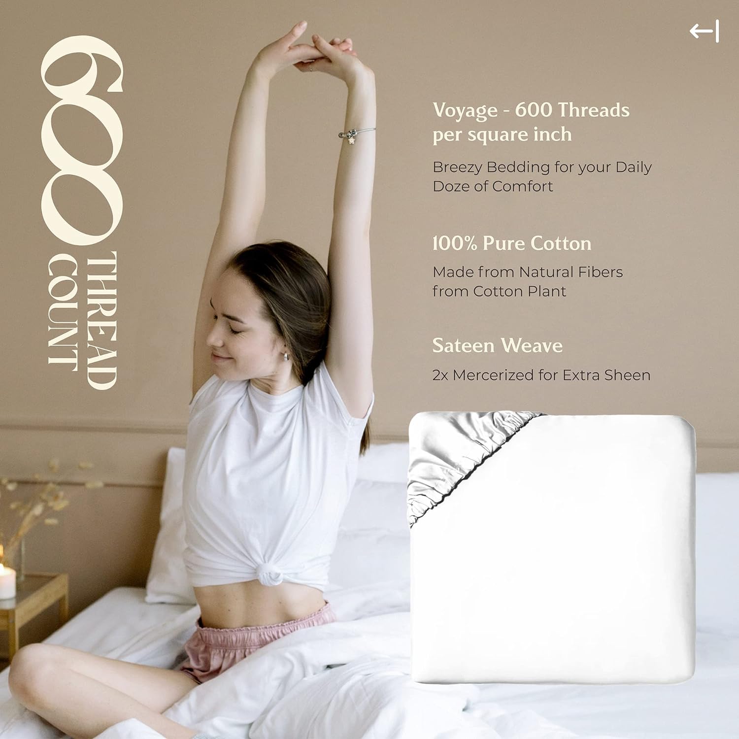 Premium Hotel Quality 1-Piece Cotton Fitted Sheet, Luxury Softest 600 Thread Count Egyptian Feel Sateen Weave Bottom Sheet, Deep Pocket Up To 18 In, King Size, White
