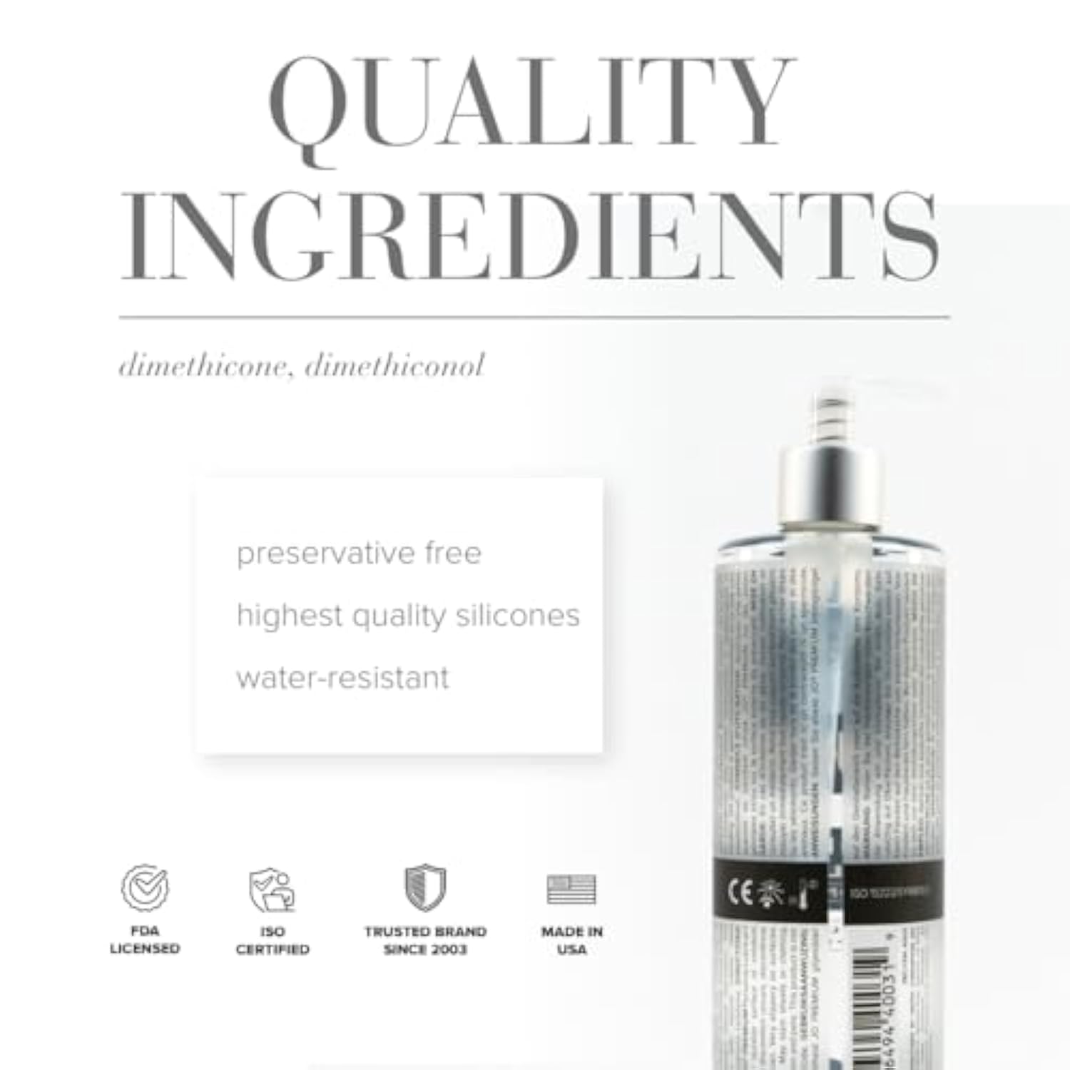 Silicone Lube Formula – Ultra-Slick And Silky; Designed For Long-Lasting Lubrication During Sex And Anal Play. | | Premium Personal Lubricant – Made With Us Pharmacopeia-Grade Silicone; No Parabens, Glycerin, Or Preservatives. | | Water-Resistant Glide – Perfect For Bath, Shower, Or Wet Conditions; Maintains Performance Without Rinsing Off. | | Condom Compatible – Safe With Latex, Polyisoprene, And Polyurethane Condoms; Not For Silicone Toys. | | Made In The Usa – Produced In Iso-Certified, Fda-Licensed Facility To Support Sexual Wellness And Privacy. | |