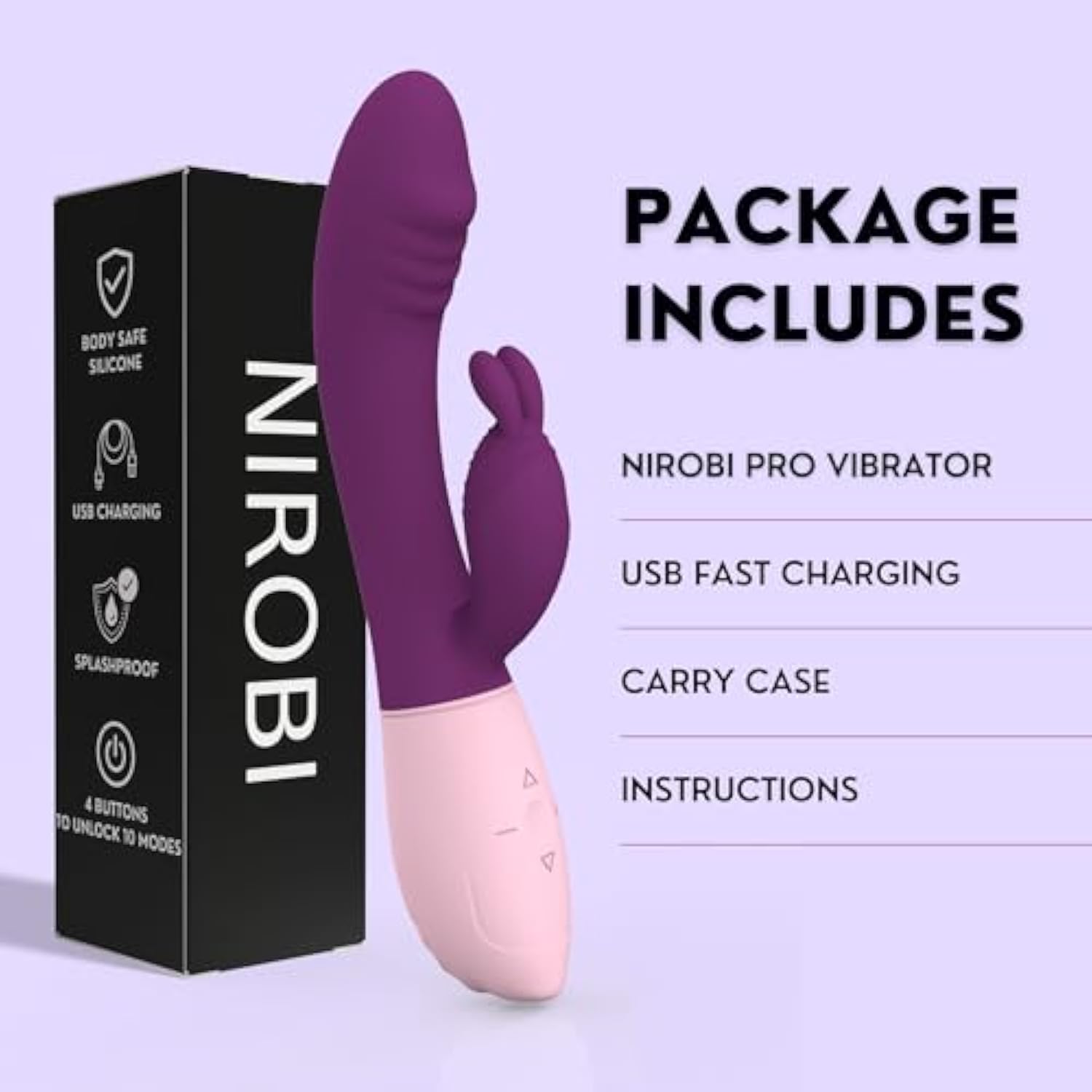 Pro Rabbit Vibrator For Women – Dual Motor G-Spot & Clitoral Stimulator, 10 Vibration Modes, Rechargeable, Body-Safe Silicone, Quiet, Waterproof (Purple)