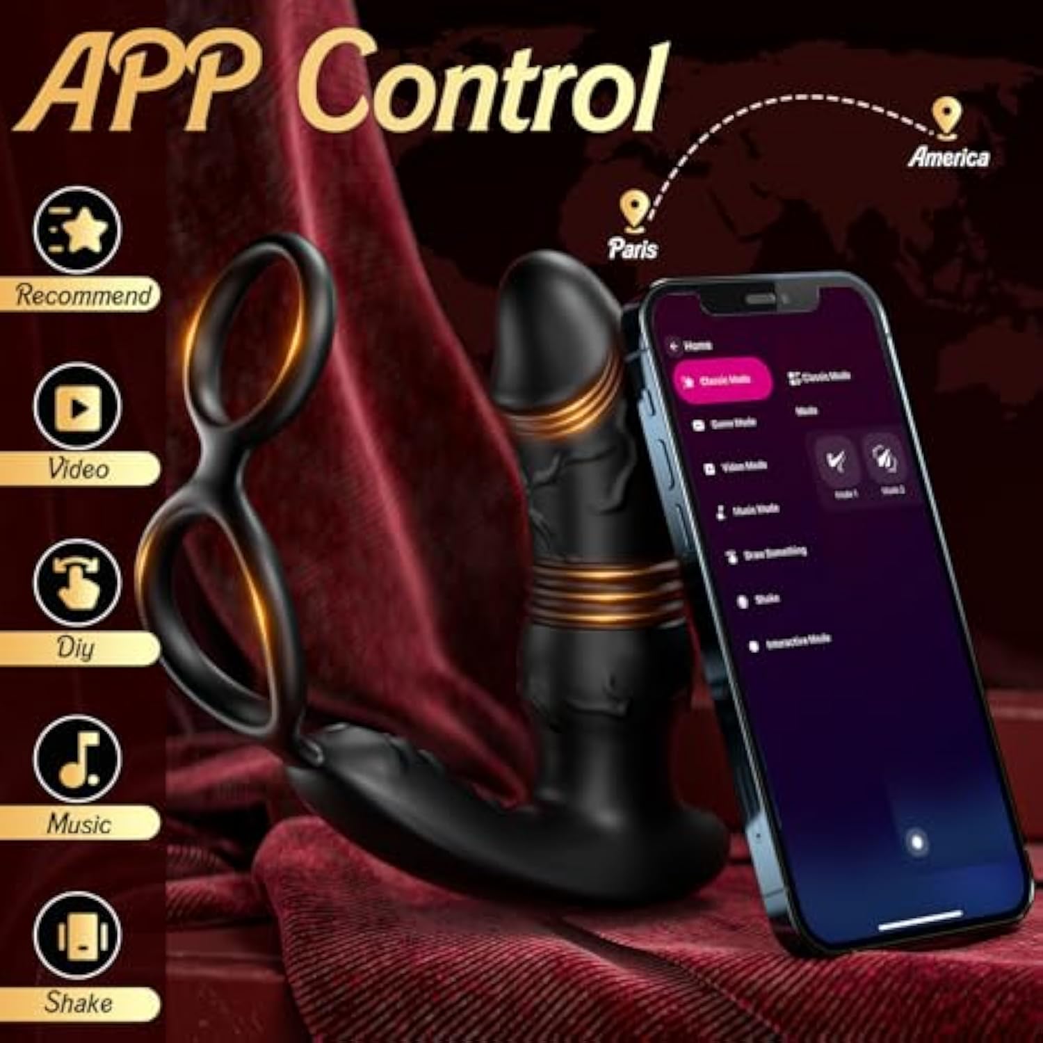 Prostate Massager App Anal Sex Toys With 10 Thrusting & Vibrating Modes, Remote Control Anal Vibrators For Men, Couples, Gay, G-Spot Vibrator Anal Dildos For Women, Men Dual Silicone Cock Ring