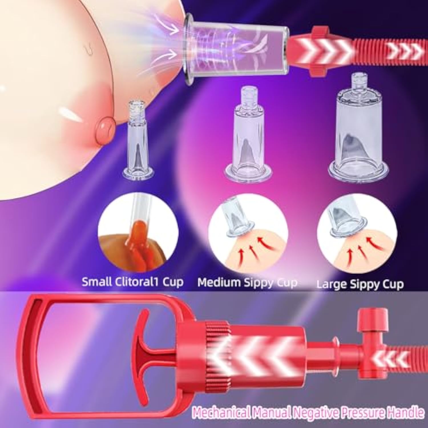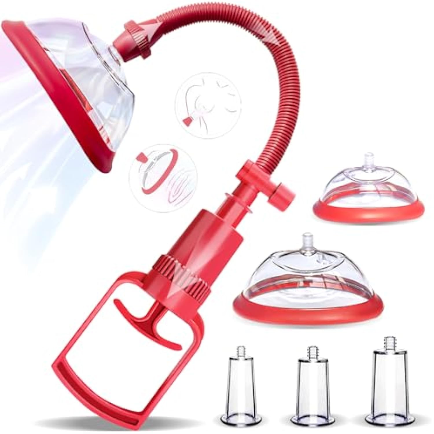 Pussy Pump Sex Toys, Clitoral Pumps Enhance Sensation, Increase Female Sexual Pleasure, Adult Game Nipple Clitoral Stimulator, Vacuum Vaginal Pump 5 Suction Cups, Promote Couple Pleasure (Red)