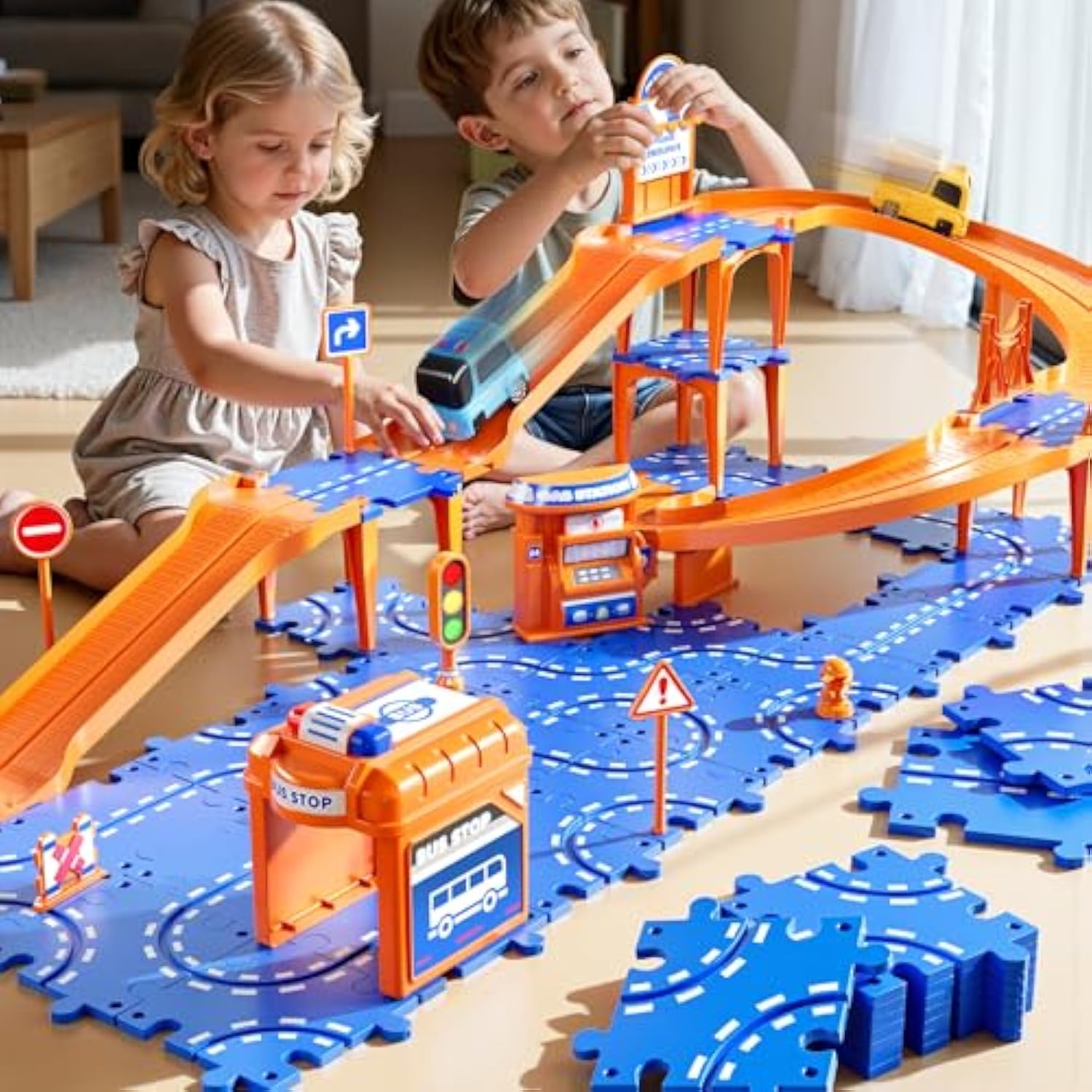 | Creative Diy Puzzle Track Set For Boys 3 4 5 6 : This 57 Piece Track Car Toy Includes Puzzle, Turns, Ramps, Road Signs, Stickers, And 2 Cars. The Educational Track Design Fosters Creativity, Concentration, And Hand-Eye Coordination In Children. Puzzle Car Tracks Toys Toys Gifts For Boys Girls Ages 3-8. | | 3-Layer Track Design: Kids Can Create 4-Layer Tracks That Cars Up, Down. Includes Road Signs For Role Play Fun And Interaction. By Piecing Together Different Routes, Children Can Improve Their Hands-On Ability, Logical Thinking And Problem-Solving Skills. Suitbable Floor Puzzle Car Tracks Toys For Kids Boys Toddlers 3 4 5 6 7 8. | | Easy To Assemble : Each Piece Of The Puzzle Can Be Put Together Seamlessly, The Flawless Union Between The Racing Car And Track S A Smooth Motion. The Car Track Set Comes With Instructions, Kids Can Assemble Together With The Help Of Parents, Enhance Parent-Child Interaction, Cultivate The Child'S Hands-On Ability And Learning For Practice Ability. | | Safe Durable : The Puzzle Track Car Playset Is Made Of High-Quality Abs Plastic, Smooth Edges; Suitable For Children To Play Indoors Or Outdoors. Recommended For Boys Girls, Toddlers, Kids, Children, Preschoolers, 3-5 4-6 Years Old. | | Ideal Car Tracks Gift For Kids Boy : Our Puzzle Car Track Set Combines Educational Puzzles And Track Cars, Making It A Perfect Gift For Boys And Girls Aged 3 4 5 6 7 8. Whether It'S A Birthday, Parties, Children'S Day, Christmas, Thanksgiving, Halloween, New Year And Other Holidays, This Set Will Bring Surprises And Excitement. | |