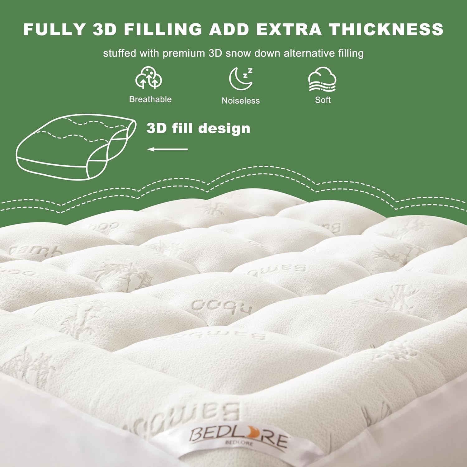 - ćPremium QualityćExperience ultimate comfort with our pillow top mattress topper queen. Crafted from premium 40% bamboo viscose material and 60% polyester