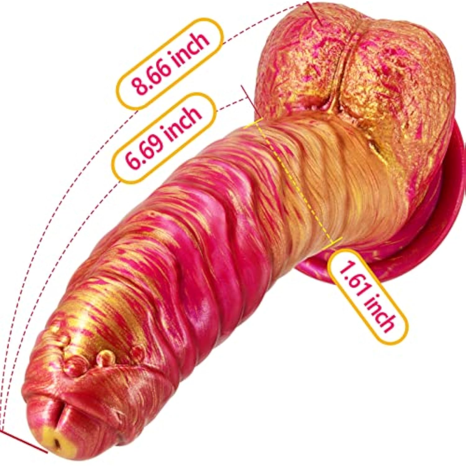 Realistic Dildo 8.66 Inch G-Spot Ribbed Cock Penis With Strong Suction Cup Silicone Prostate Massager Sex Toys For Vaginal Anal Masturbation, Red & Golden,