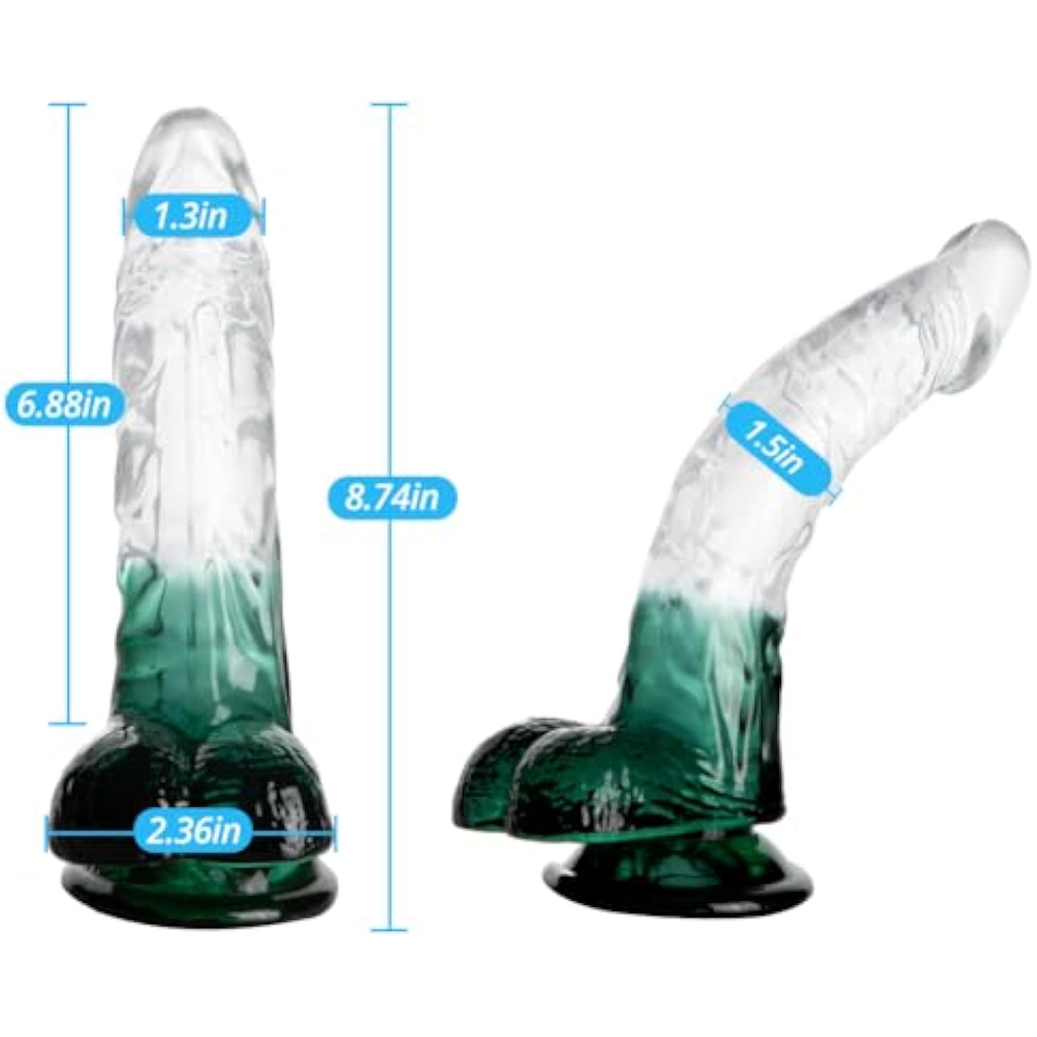 Realistic Dildo Curved Shaft G-Spot Stimulation Penis With Strong Suction Cup Testis And Veins Design For Sensitive Point Sex Stimulation For Woman Man Masturbation Adult Toy (Green)