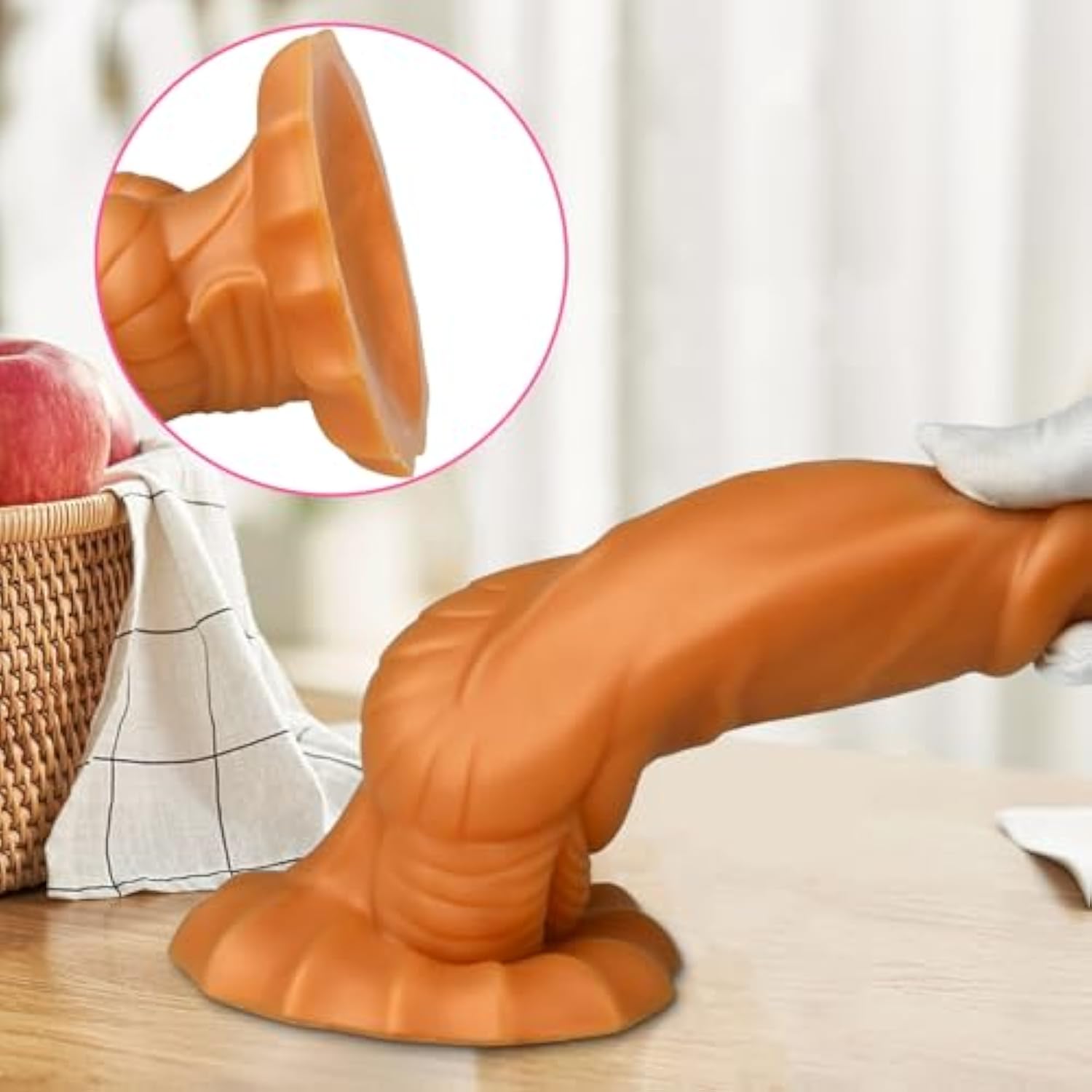 Realistic Dildo G-Spot Massage Thick Animal Horns Penis Liquid Silicone Monster Anal Plugs Buttplug With Oval Suction Cup Base For Men Women Adult Sex Toys (L)