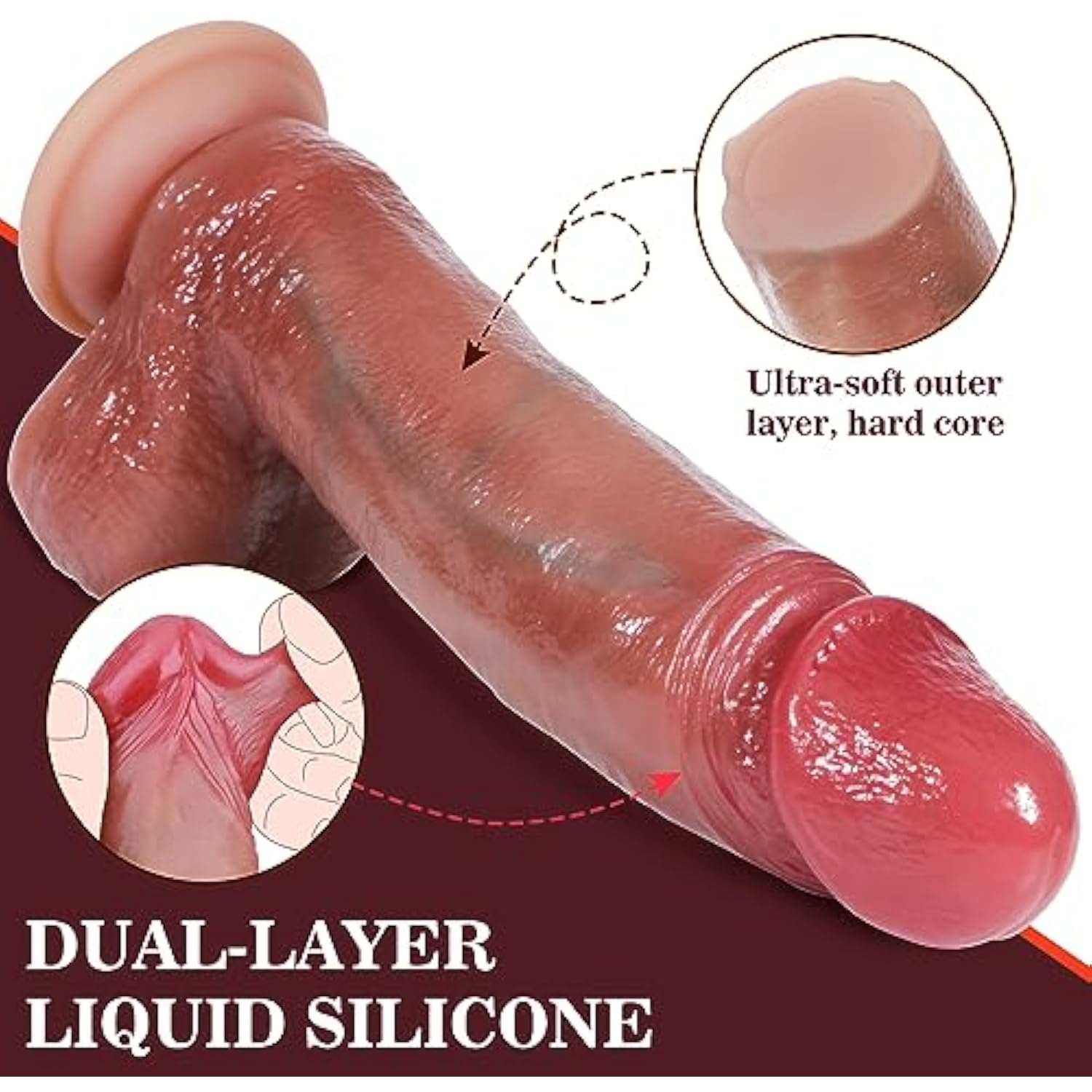 Realistic Dildo Sex Toys, Soft Silicone Feels Like Skin Male Anal Dildos With Strong Suction Cup For Hands-Free Play, G Spot Stimulator With Balls Lifelike (Large)