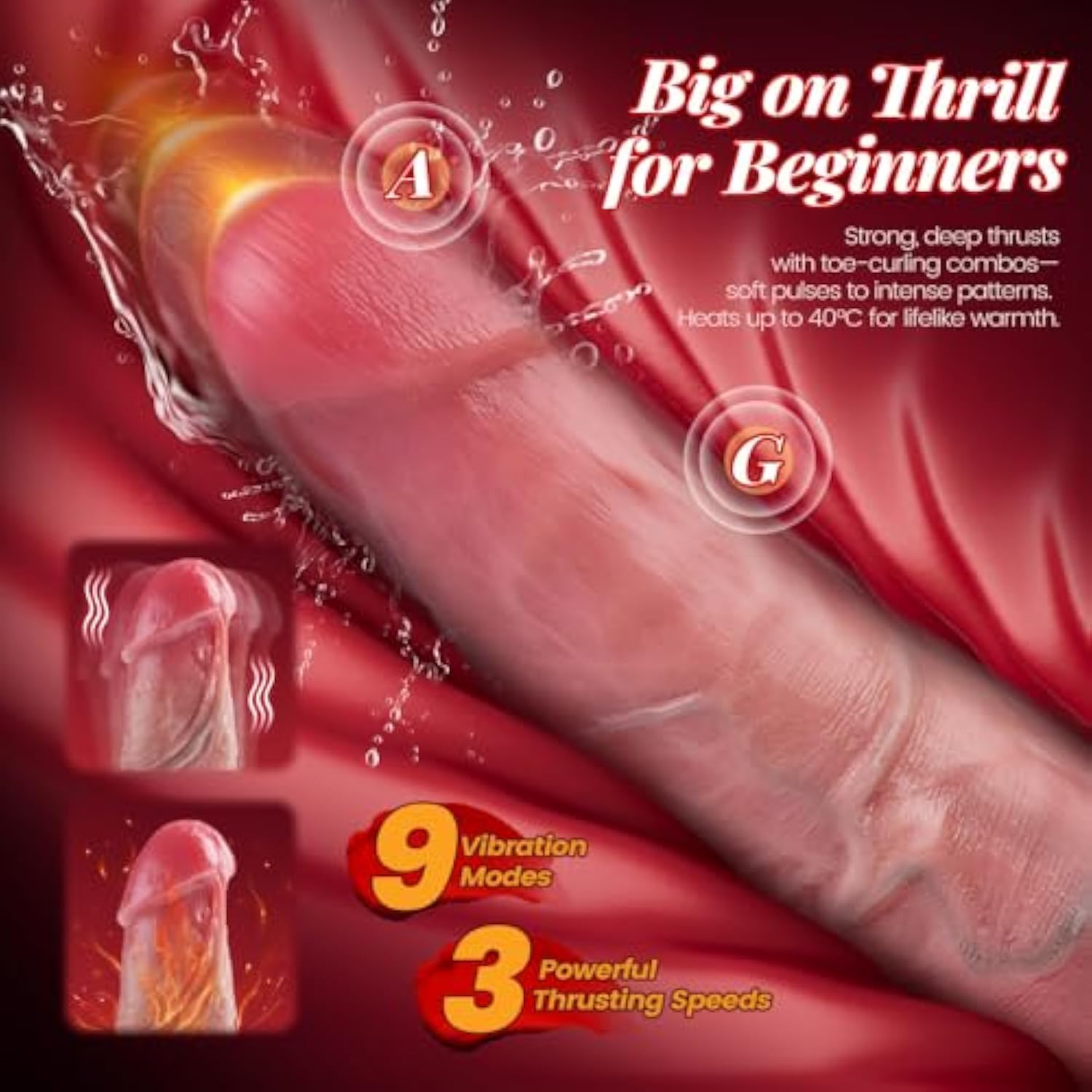 Deep, Hard, And Oh So Good – Feel Every Delicious Stroke As 3 Powerful Thrusting Speeds Drive Deep With Intense Rhythm. Paired With 9 Wild Vibration Modes, This Realistic Thrusting Dildo Teases, Pulses, And Pounds You Into Pure Pleasure. Whether You’Re Craving Slow Build-Up Or Fast, Toe-Curling Finish—This Vibrating Realistic Dildo Knows Exactly How To Take You There. | | Rapid-Fire Thrusting Action – Not Your Average Back-And-Forth. This Powerful Thursting Dildo Pumps Fast And Deep With 3 Explosive Thrusting Speeds That Deliver Hard, Rhythmic Strokes Right Where You Need Them. Get Ready For Toe-Curling Pleasure That Rocks Your Body Into Full-Blown Bliss. | | Gets Hot Where It Counts – Built-In Heating Warms The Thick Silicone Dildo Shaft To A Natural Body Temperature, Making Every Inch Feel Deliciously Real. As Warming Dildos Slides Deep, You’Ll Feel That Lifelike Warmth Intensify Your Pleasure—Just Like The Heat Of A Real Lover, But Always Ready When You Are. | | Thick, Realistic, And Ready To Play – This Realistic Dildo Vibrator Features Soft, Lifelike Silicone Over A Firm Core, Designed In The Perfect Average Size—7.8 Inches Long With A 1.5-Inch Diameter. It’S Thick Enough To Stretch You Deep, Smooth Enough To Slide Right In, And Ideal For G-Spot Or Anal Stimulation. | | Ride It Hard, Hands-Free – This Suction Cup Dildo Stays Locked In Place On Any Smooth Surface—Perfect For Riding In Doggy, Cowgirl, Or Standing Positions. Whether You’Re Exploring Anal Play, Solo Sessions, Or Couple’S Teasing, The Remote-Controlled Vibrator Penis Lets You Take Control Or Surrender It For Ultimate Hands-Free Fun. | | Lube It And Love It – This Moving Dildo Comes With A Free Bottle Of Water-Based Lube So You Can Slide Into The Action The Moment It Arrives. Whether You'Re Using The Adult Sex Toy For G-Spot Play, Anal Stimulation, Oral Training, Or Deep Thrusting, Just Lube It Up And Let The Lifelike Silicone Glide Smooth And Easy—No Waiting, Just Pure Pleasure. | |