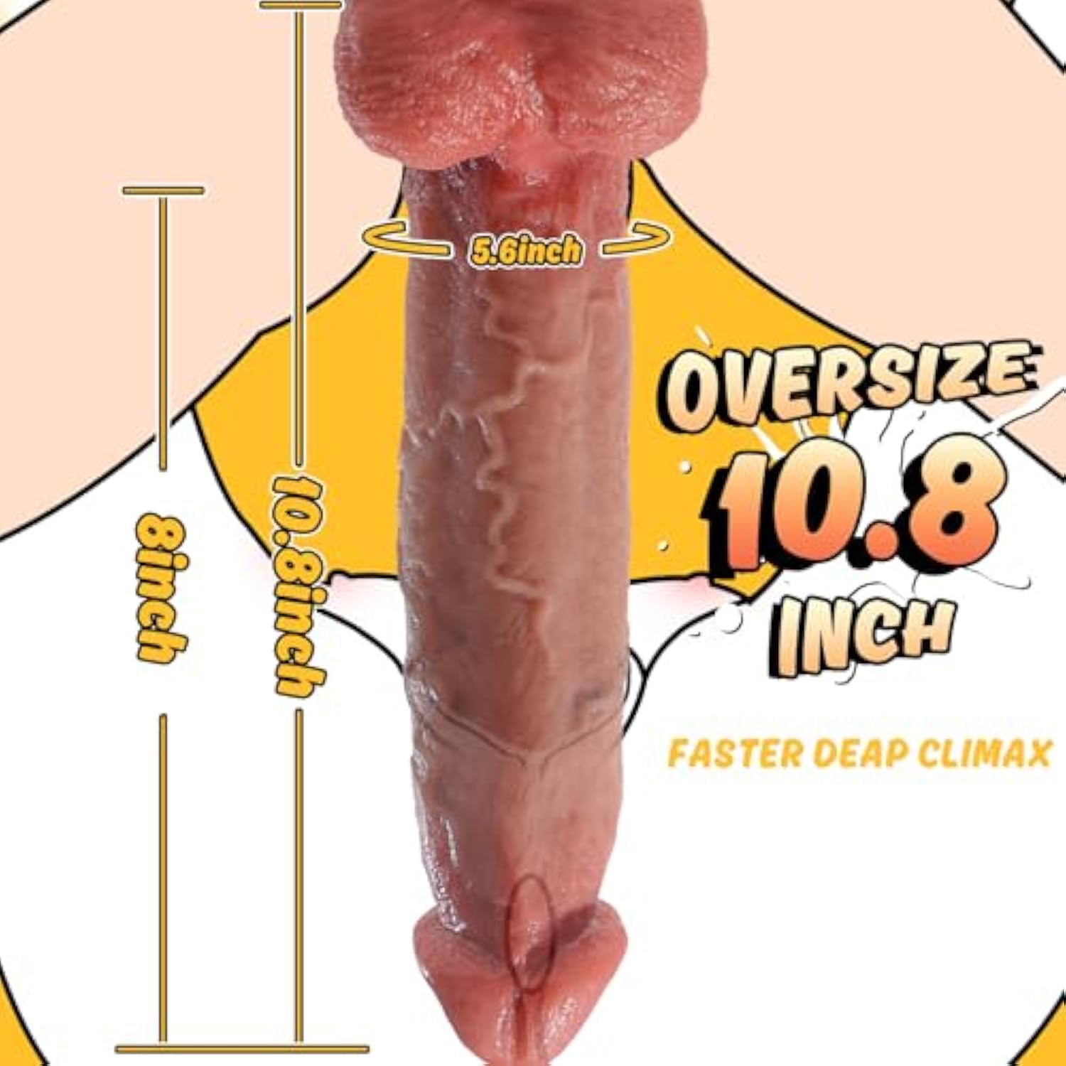 Realistic Huge Dildo Sex Toys - 10.8'' Real Skin Dual Density Silicone Big Dildos With Strong Suction Cup For Hands-Free Play, G-Spot Realistic Dildo Anal Sex Toys For Men And Women, Couples