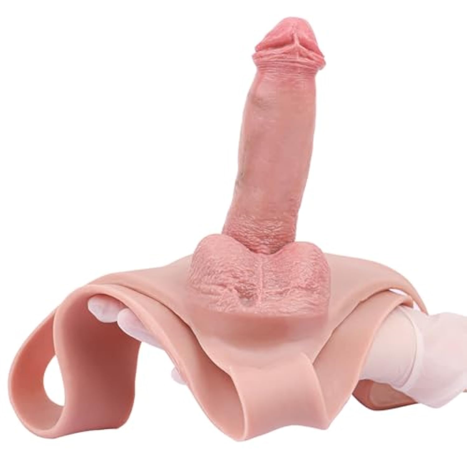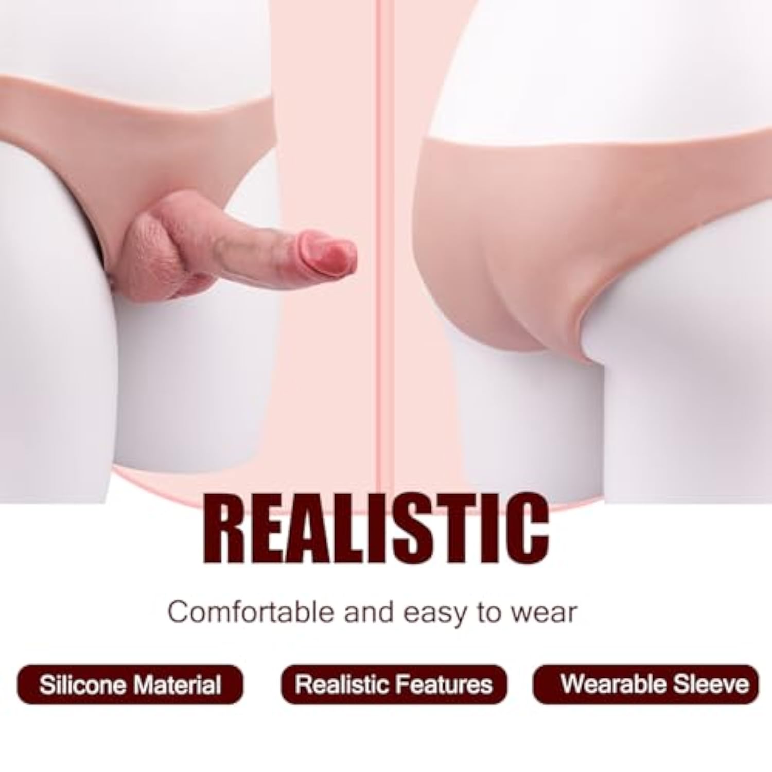 Realistic Male Penis Enlarge Girth Sleeve Pants,6.22" Long Dildo Male Silicone Penis Sheath Underwear,Men Harness Strap On Extender Reusable Condom Elastic Panties,Couples Bedroom Sex Toy