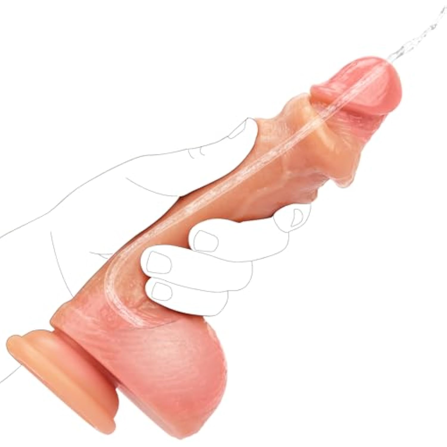 Realistic Movable Foreskin Dildos Squirting Dildo, 2 In 1 Silicone Foreskin Cock Ejaculating Toy With Suction Cup, Cum Penis For Vaginal & Anal Play, Strap-On Dildo Adult Sex Toys For Women Men
