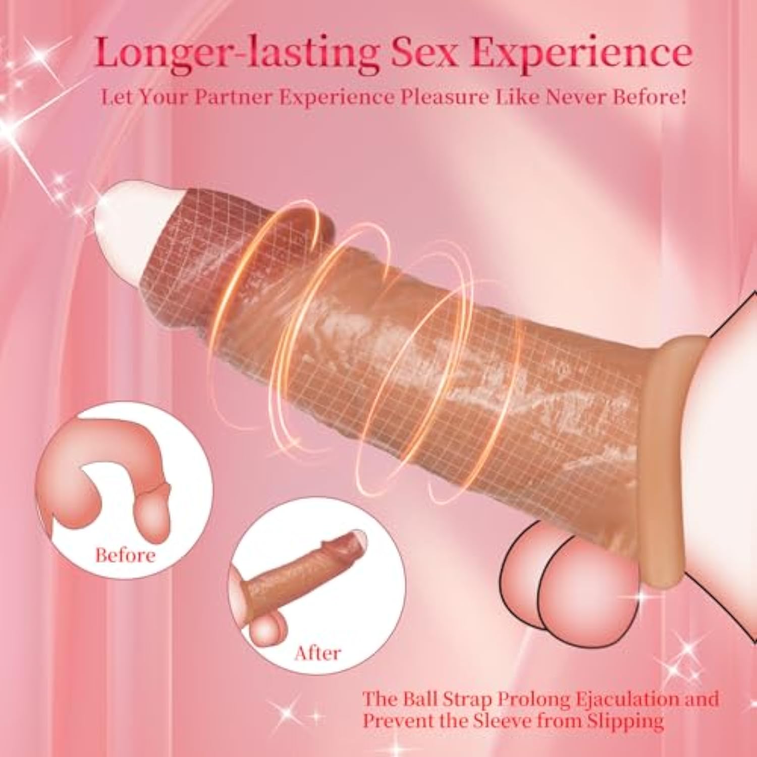 Realistic Penis Sleeve Cock Sleeve Penis Extension Sleeve Penis Sleeve Enlarger Girth Enhancer Sleeve Cock Sheath Penis Pump Adult Toys Penis Ring Male Sex Toys For Men Couples Enlarge Prolong