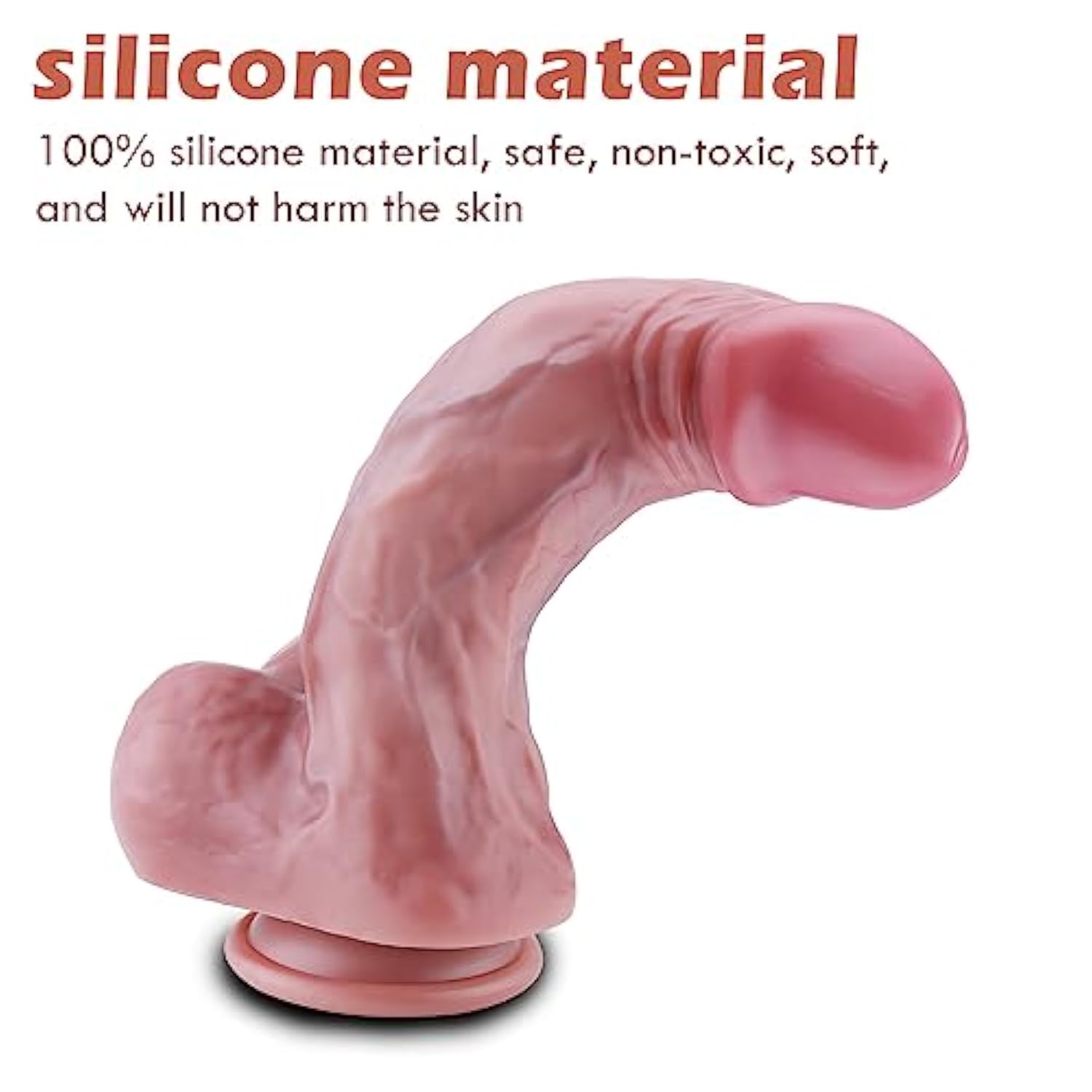 Realistic Silicone Huge Dildo, With Powerful Suction Cups For Hands-Free ?For Womens/Men/Gay,Balls For Vaginal G-Spot And Anal Play… (Big Flesh)