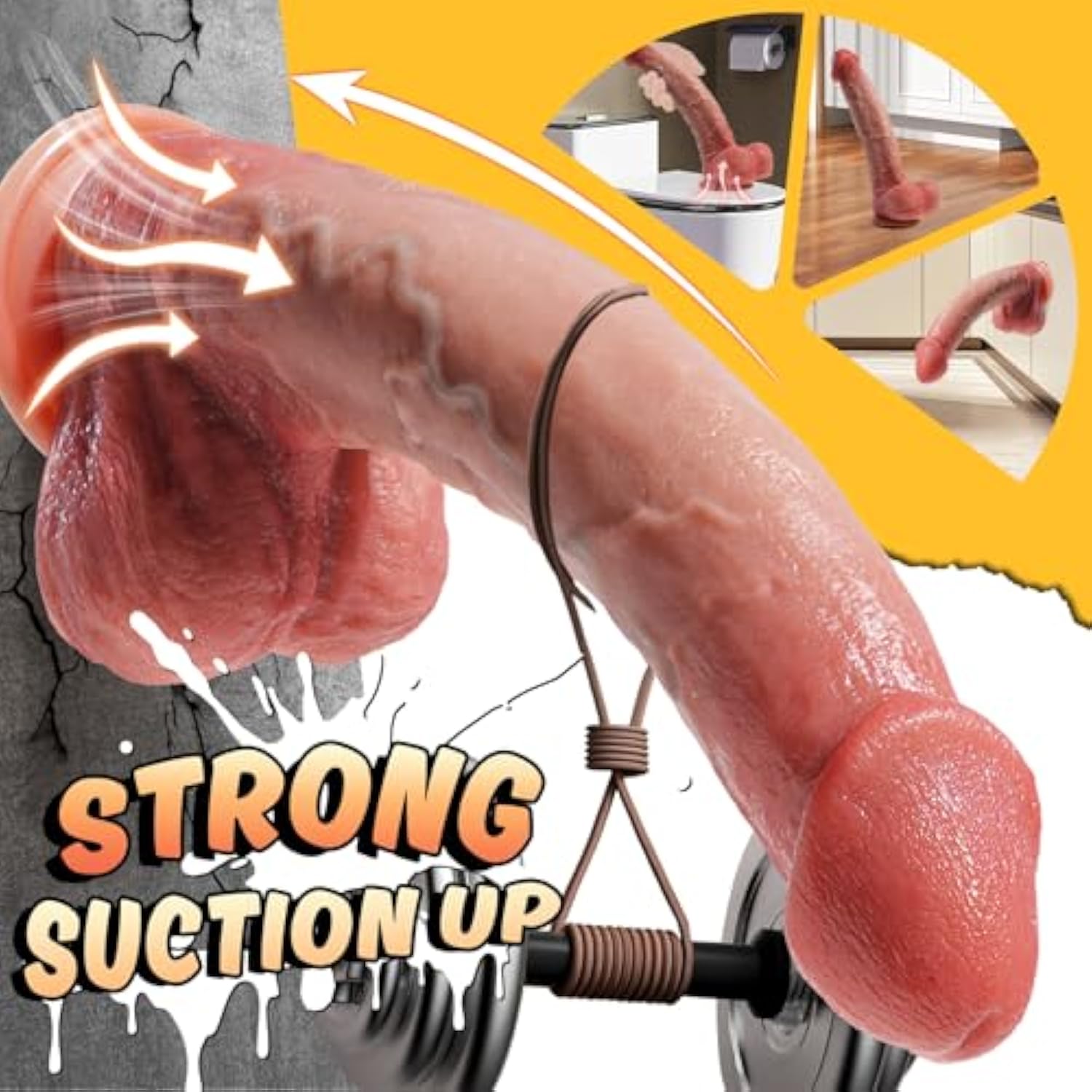 Realistic Thicker Huge Dildo -10.8'' Soft Flexible Lengthening - Curved Upwards Strong Suction Cup For Hands-Free With Furious Veiny, Skin-Like Silicone Adult Sex Toys Giant Dildos For Vagina Anal