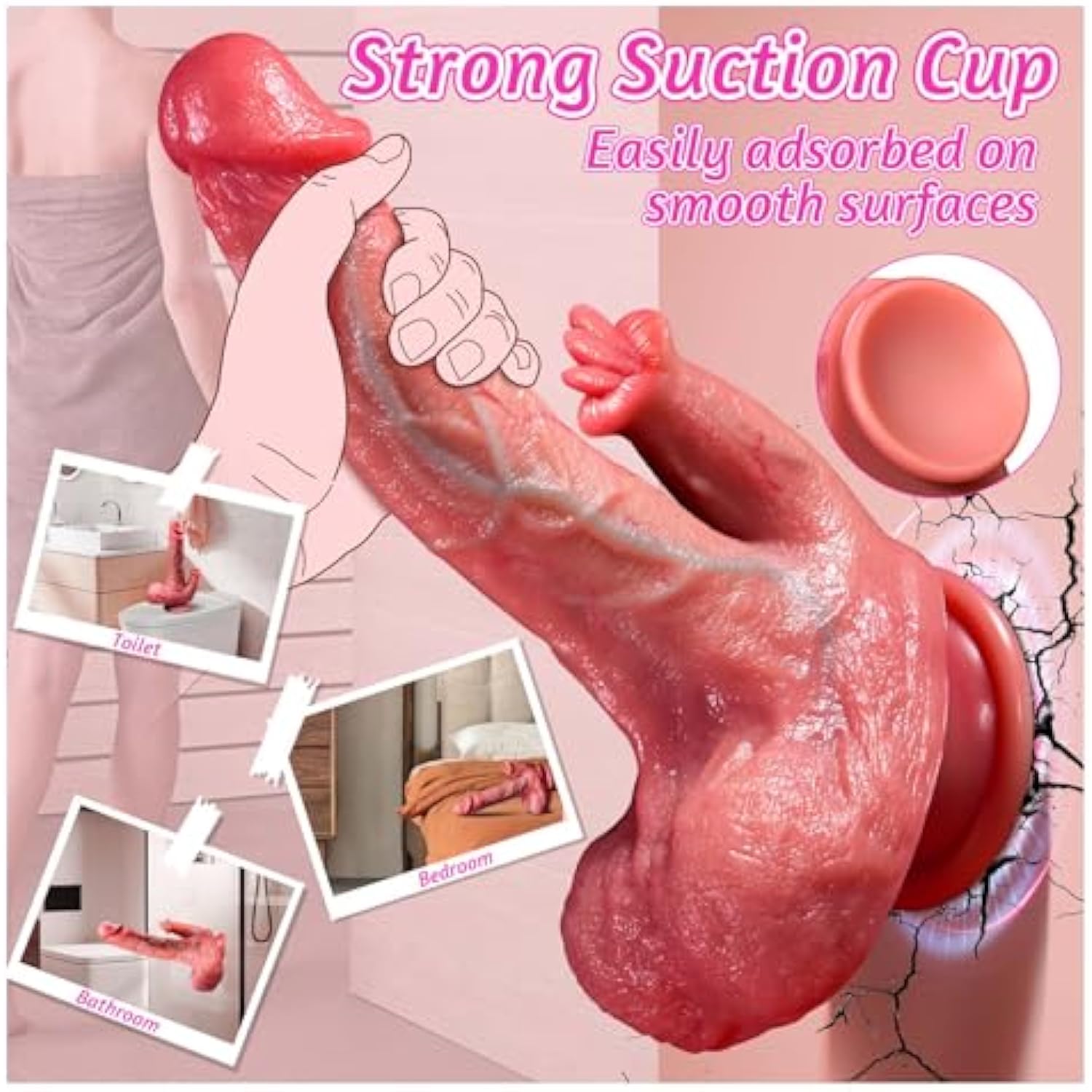 Realistic Thrusting Dildo Licking Vibrator - 5 In 1 Sex Toys Dildos With 9 Vibrating 9 Thrusting Heating & Tongue Licking Modes For G Spot Anal Stimulation, Silicone Anal Dildo For Women And Couple