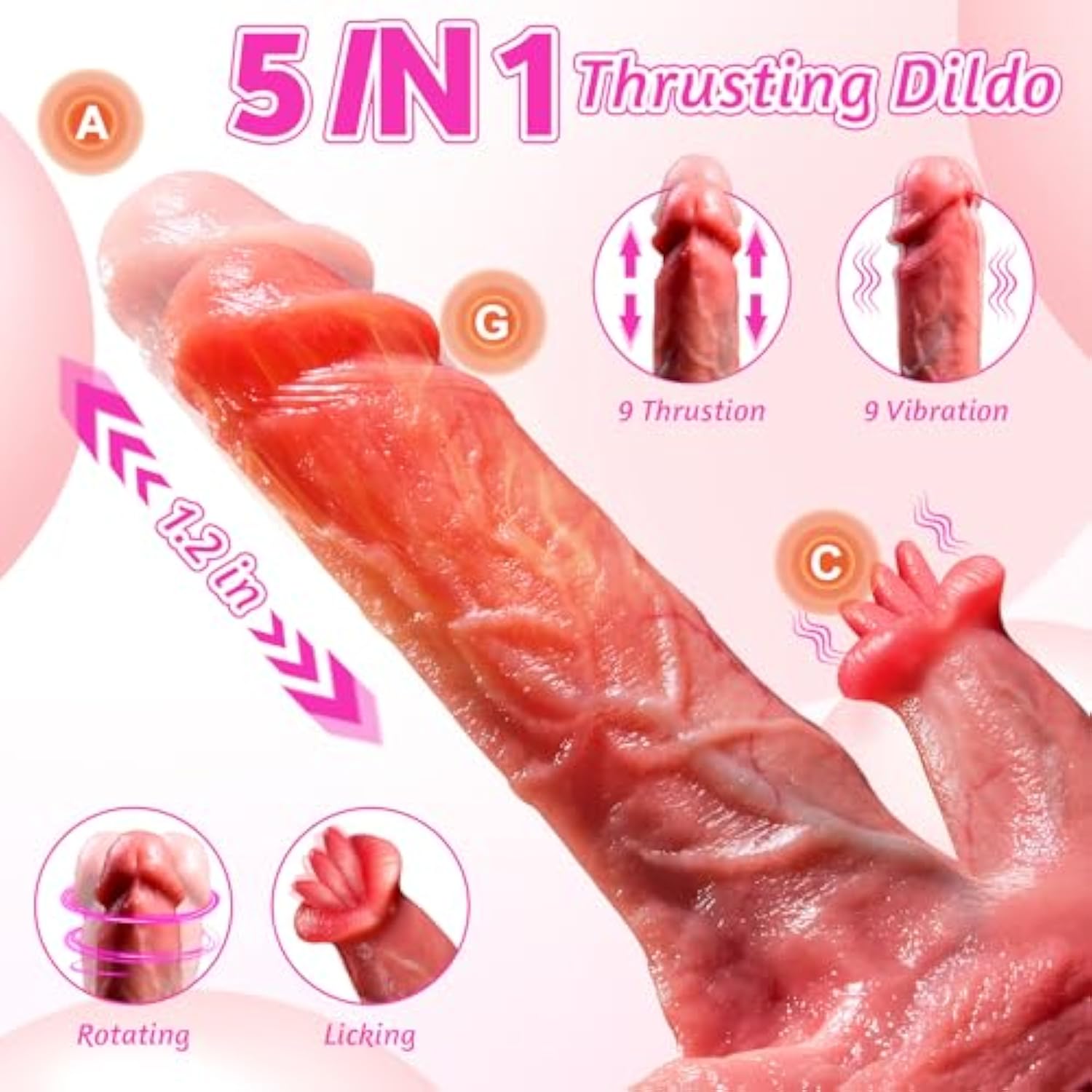 - ?Upgraded Thrusting Dildo Vibrator?This Dildo Is Different From Other Dildos, Which Has Five Multi-Functions. This Adult Toys Has Added Thrusting, Vibrating, Rotating, Heating And Tongue Licking Modes. You Can Choose Your Favorite Mode Through The Remot