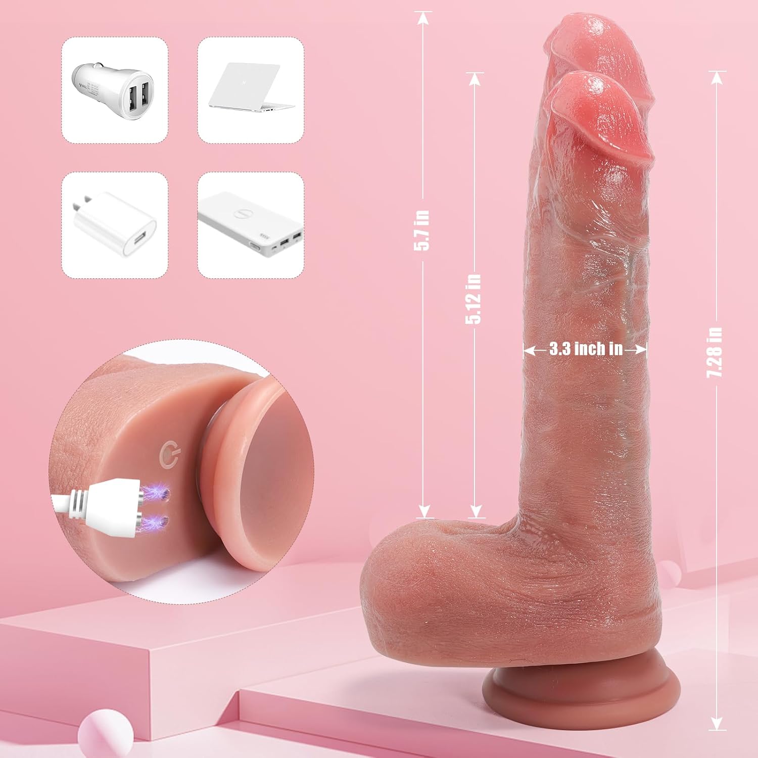 Realistic Thrusting Dildo Vibrator - 7" Silicone Dildo with 10 Modes & Suction Cup