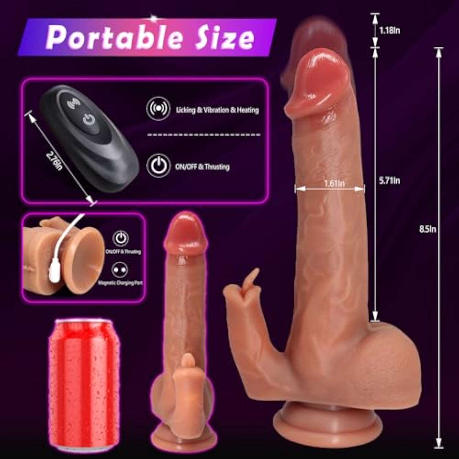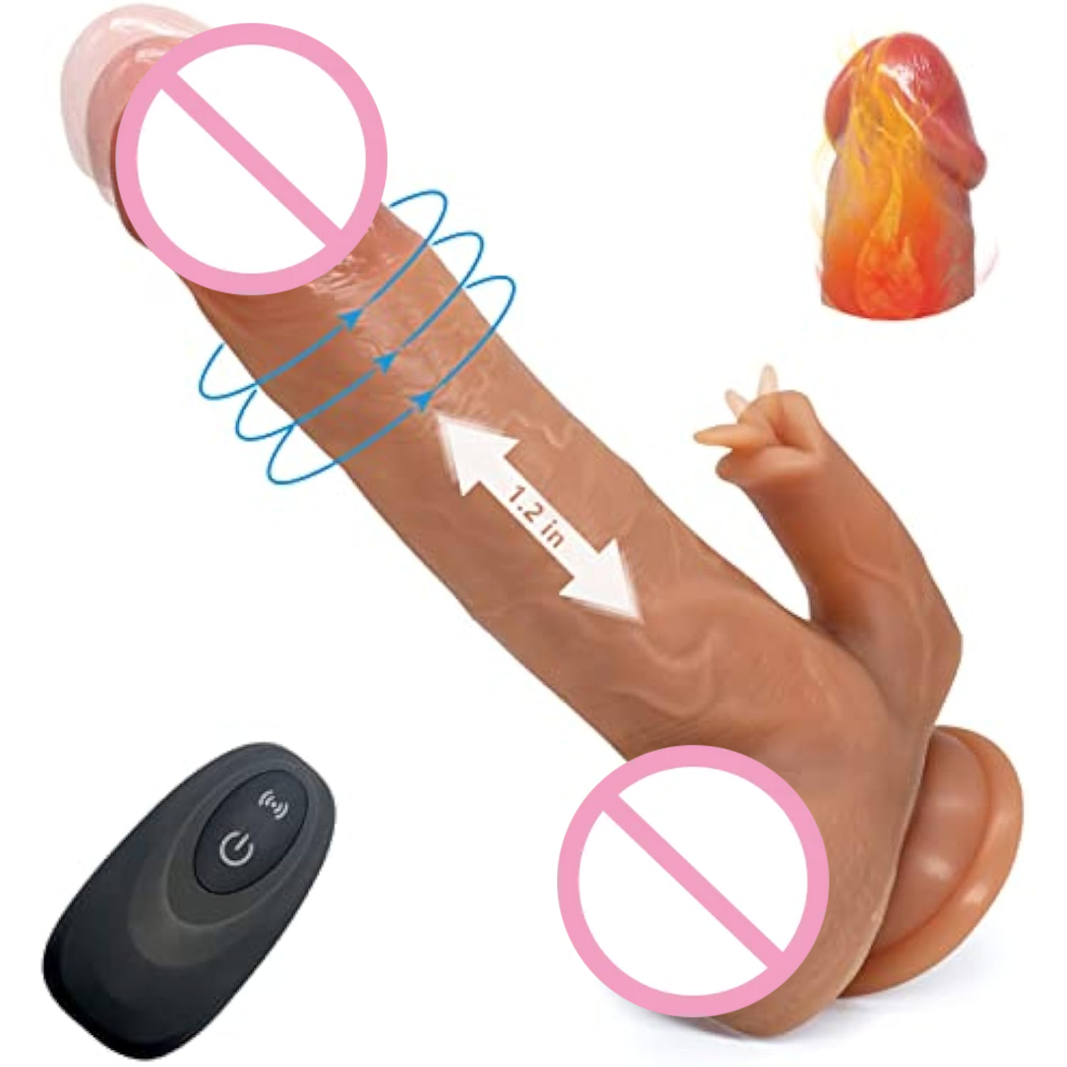- ?4 In 1 Realistic Dildo?This Big Silicone Dildo Thrusts Up And Down With 7 Pulse-Pounding Speeds For Deep Pleasure. The Tip Rotates To Stir Up Your G-Spot. It Also Buzzes With 10 Vibrationlicking Functions. Besides, Heating Function Design Feels Just Li