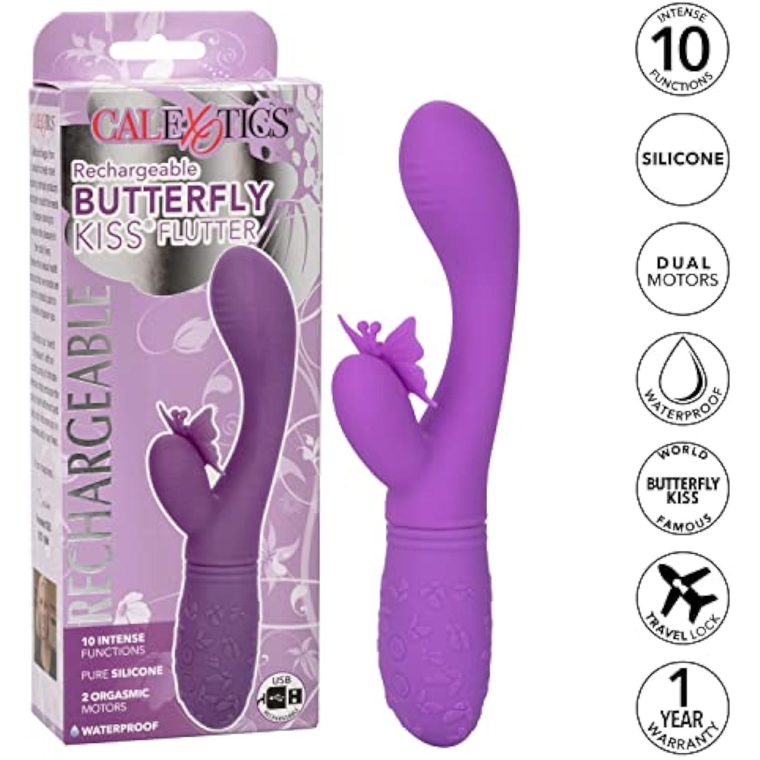 Rechargeable Butterfly Kiss Flutter – Rechargeable G Rabbit Massager Sex Toy For Women - Purple