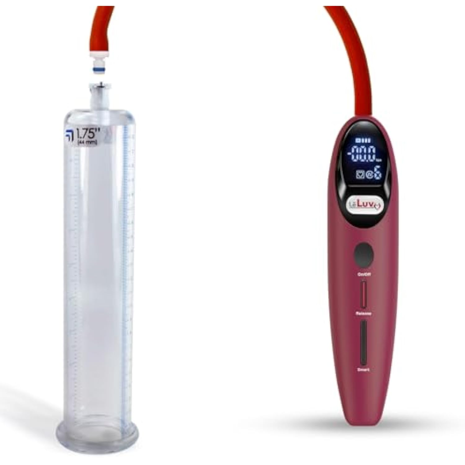 Red Magna Electric Penis Pump - 9" X 1.75" Diameter - Lcd Smart Handheld Usb Rechargeable Untapered Acrylic Round Flange Quick-Disconnect Cylinder