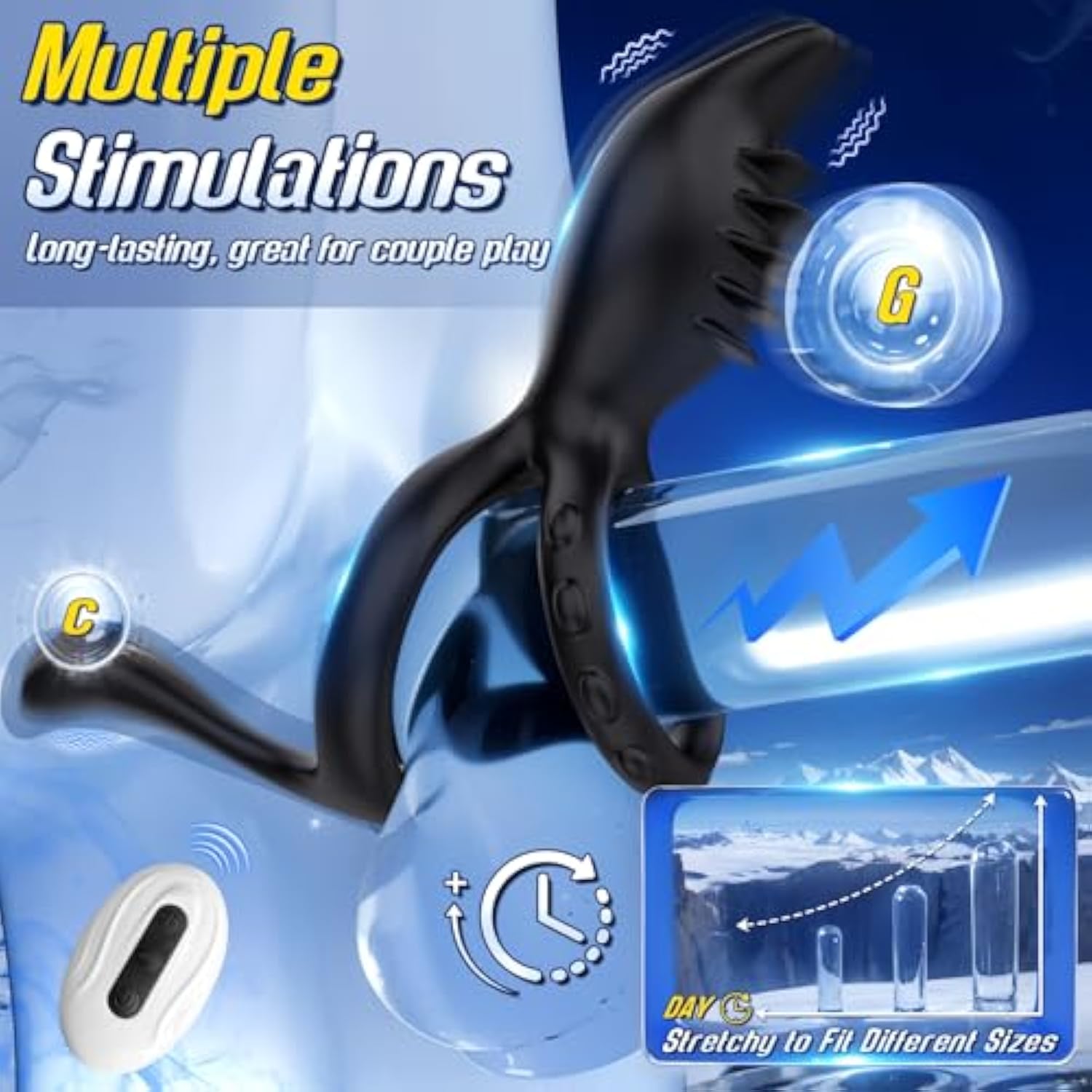 - 3-In-1 Design: This Vibrating Penis Rings Feature A Dual-Ring Design That Extends Erection Time. The Tail Part Stimulates The Perineum And Scrotum For More Intense Sensations, While The Head Acts As A Clitoral Stimulator, Delivering Extraordinary Pleasu