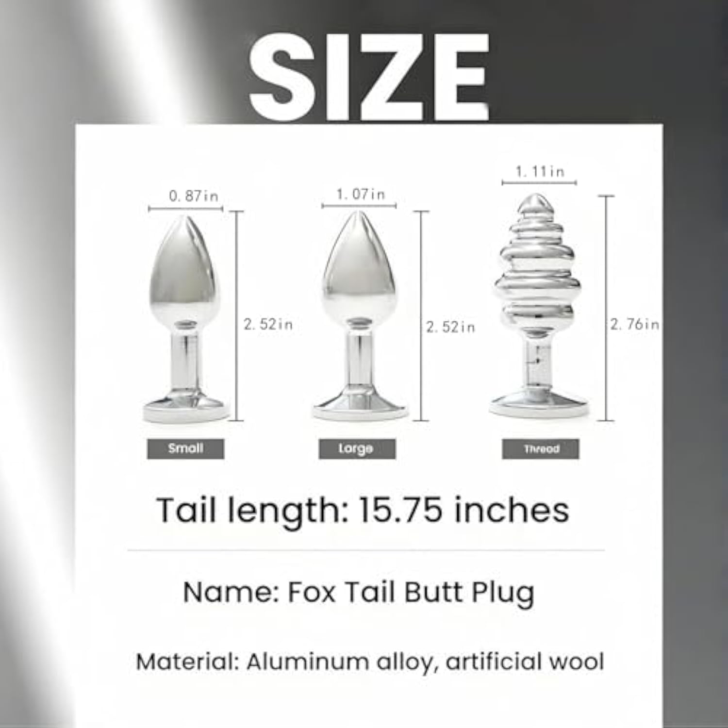 | 3 Stylish Colors And Premium Materials?Choose From Elegant Pink, Sleek Black, Or Classic White. The Anal Plug Base Is Crafted From Smooth, Body-Safe Aluminum Alloy, While The Fluffy Fox Tail Is Made Of Ultra-Soft Synthetic Fur For A Luxurious Feel | | Interchangeable Design For Custom Play?Easily Detach The Tail From The Plug Base! Includes 3 Replaceable Plug Heads, Letting You Mix And Match Sizes And Styles For Versatile Fun | | Perfect For Roleplay And Sensual Adventures?Elevate Your Cosplay Or Intimate Moments With This Playful Accessory. Ideal For Couples Seeking To Spice Up Their Connection Or Solo Explorers Embracing Their Fantasies | | Sleek, Comfortable And Discreet?The Lightweight Metal Plug Features A Ergonomic Shape For Secure Wear, While The Silky-Smooth Surface Ensures Comfort During Extended Use | | Discreet And Secure Packaging?Arrives In A Plain, Unmarked Box To Protect Your Privacy. Includes A Storage Pouch To Keep Your Set Organized And Ready For Next Time | |