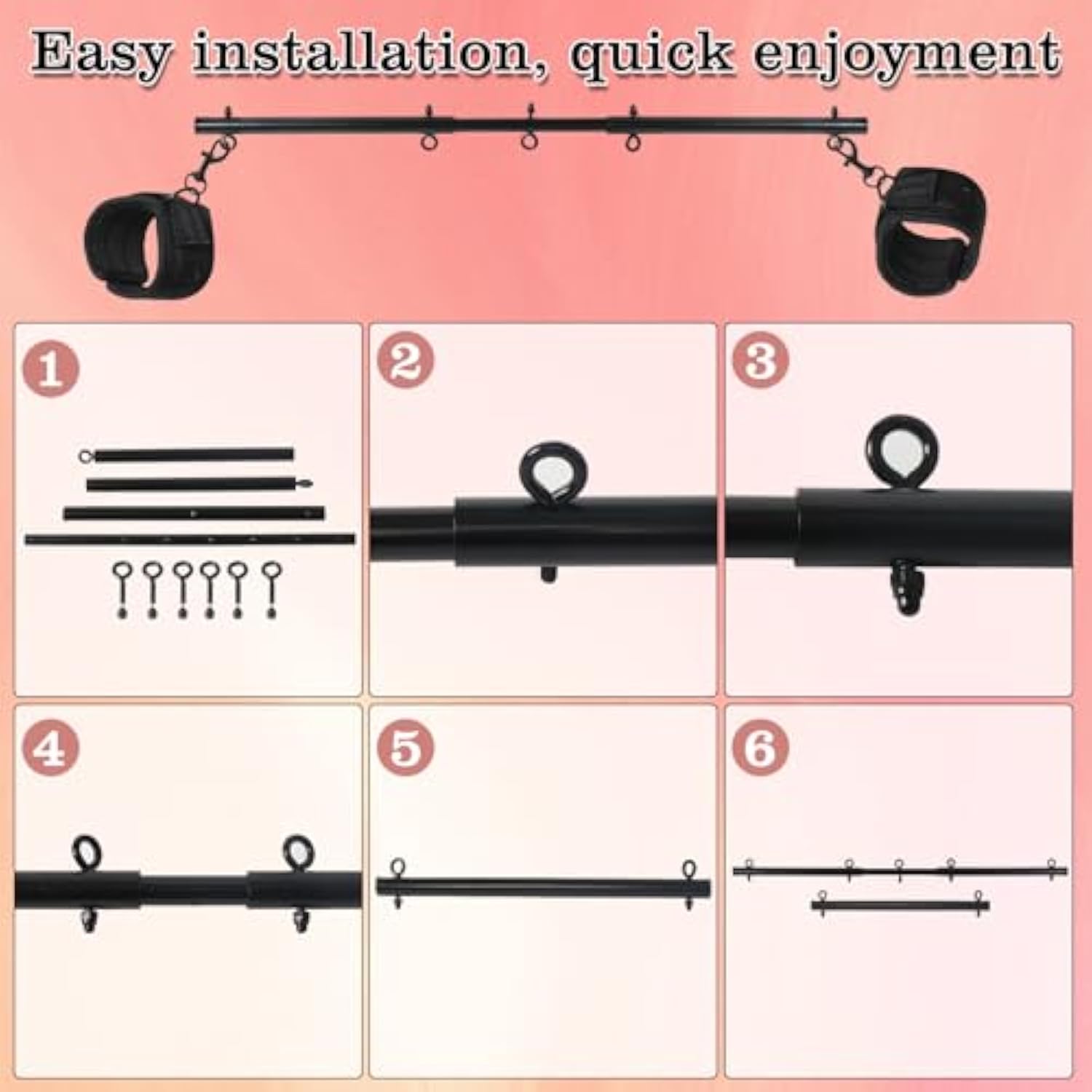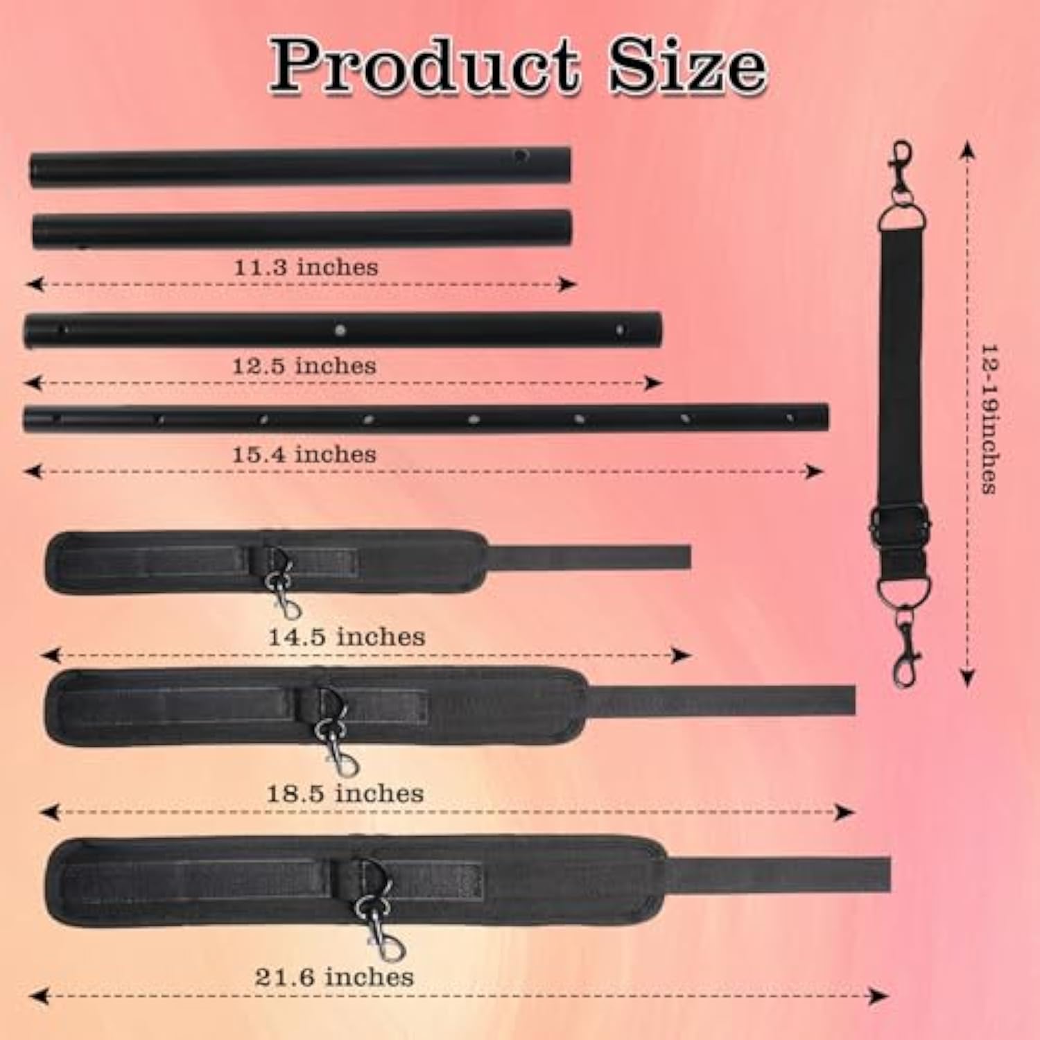Restraints Bondage Detachable Spreader Bar Sex Toys, Adjustable Bdsm Bondages With Soft Feather Handcuffs & Ankle Cuffs, Adult Toys Fetish Expandable Sm Kits For Couples & Sm(Black)