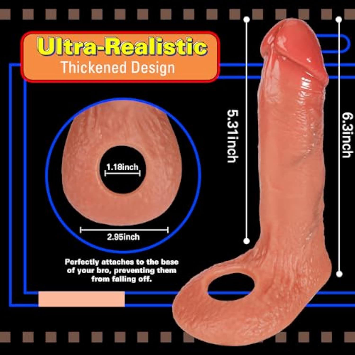 Reusable Penis Sleeve, Adult Penis Sleeve Extender Ultra-Soft Penis Enlarger Realistic Dildo Cock Sleeve For Couples Silicone Penis Ring For Men