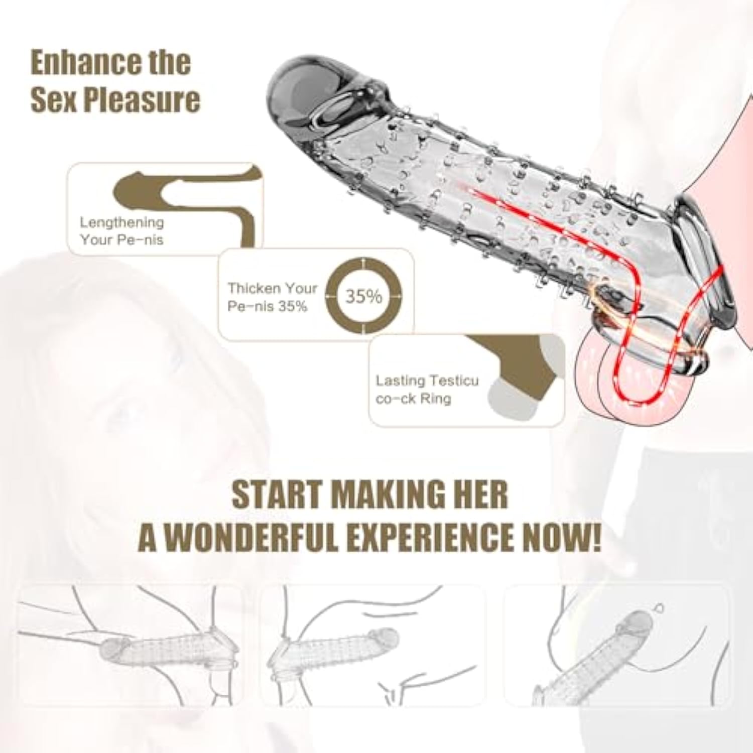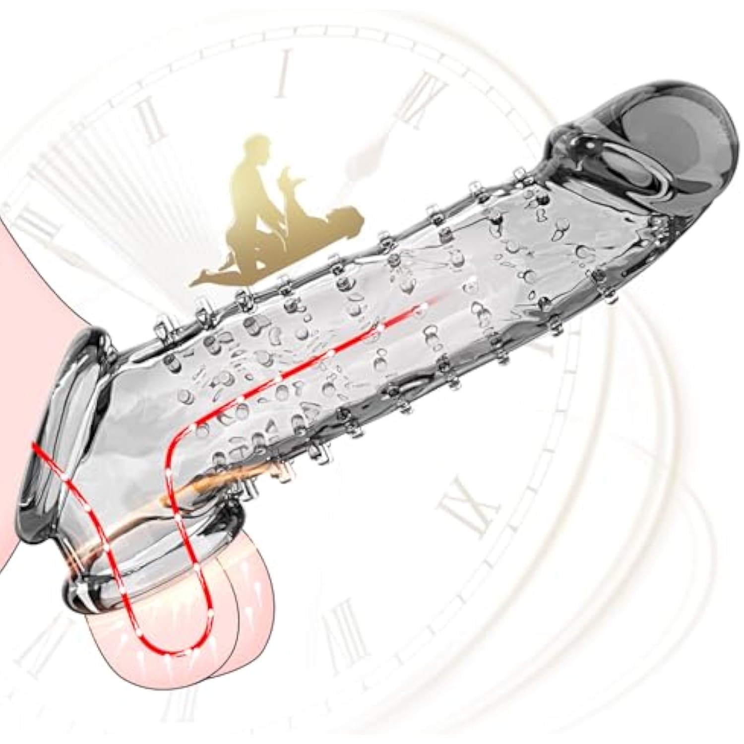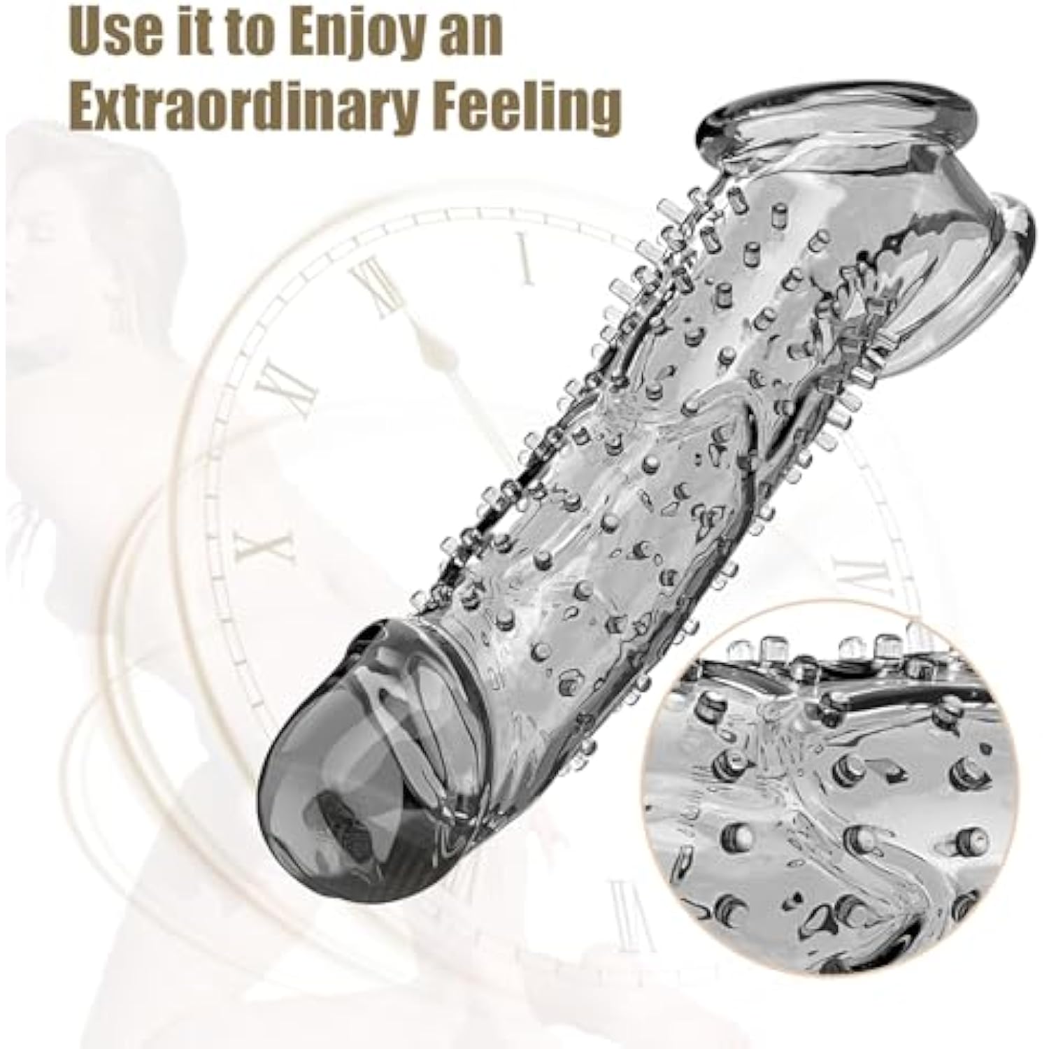 Reusable Penis Sleeve Cock Ring, Unique Barbed Shaped Clear Cock Sleeve Penis Extender Adult Sex Toys For Women And Men, Waterproof Penis Enlarger Male Sex Toys Cock Stimulator For Adult More Pleasure