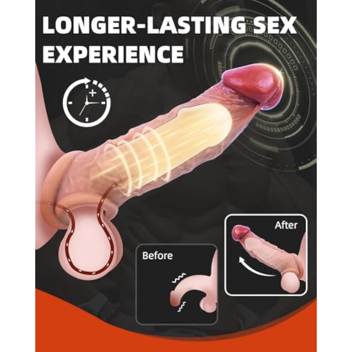 - ?Humanized And Realistic Design?: This Reusable Cock Sleeve Penis Extender Adopts A New Texture And Wearing Design. When Worn, The Length Is Increased By 2In And The Thickness Is Increased By 35%. This Sex Toy Can Stimulate The Anal Clit G -Spot , Etc A