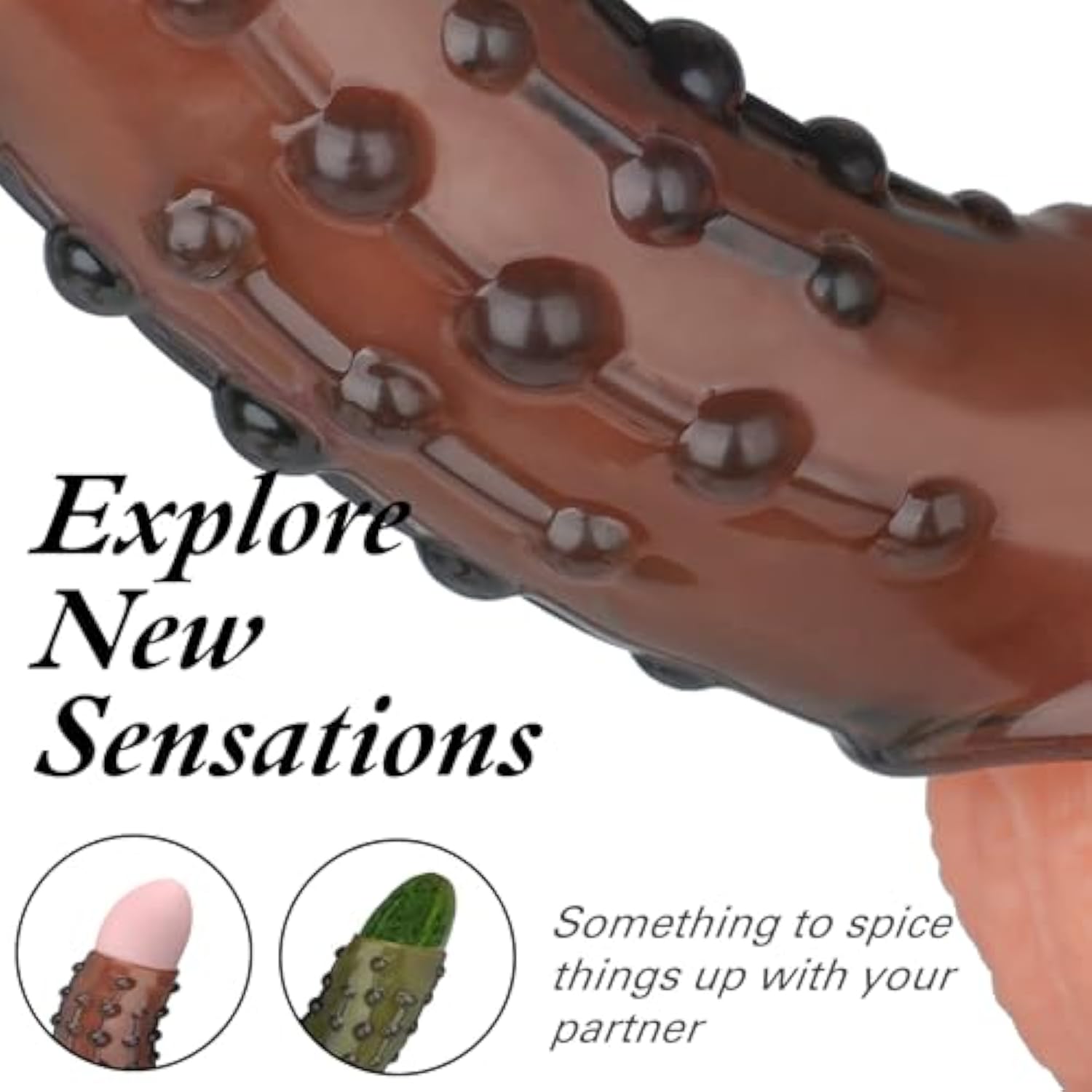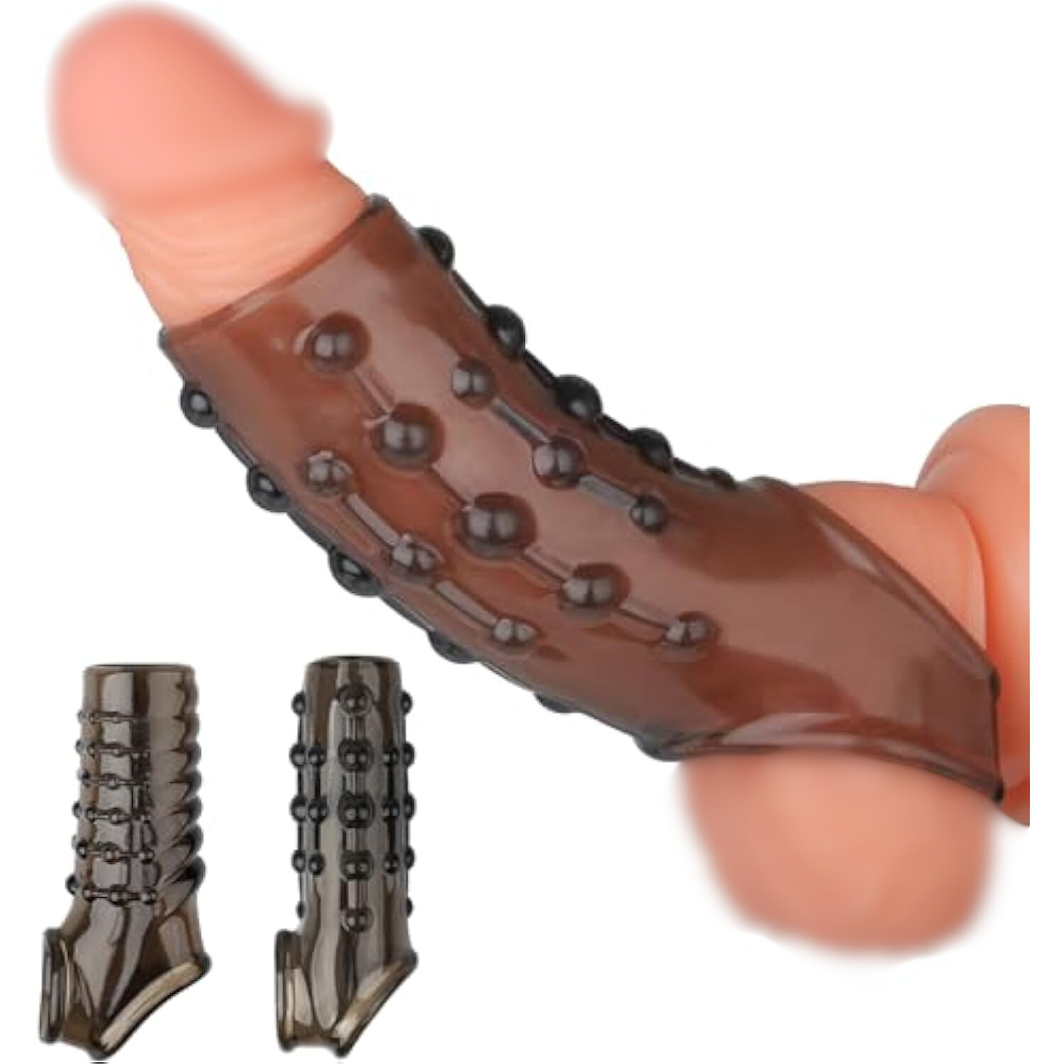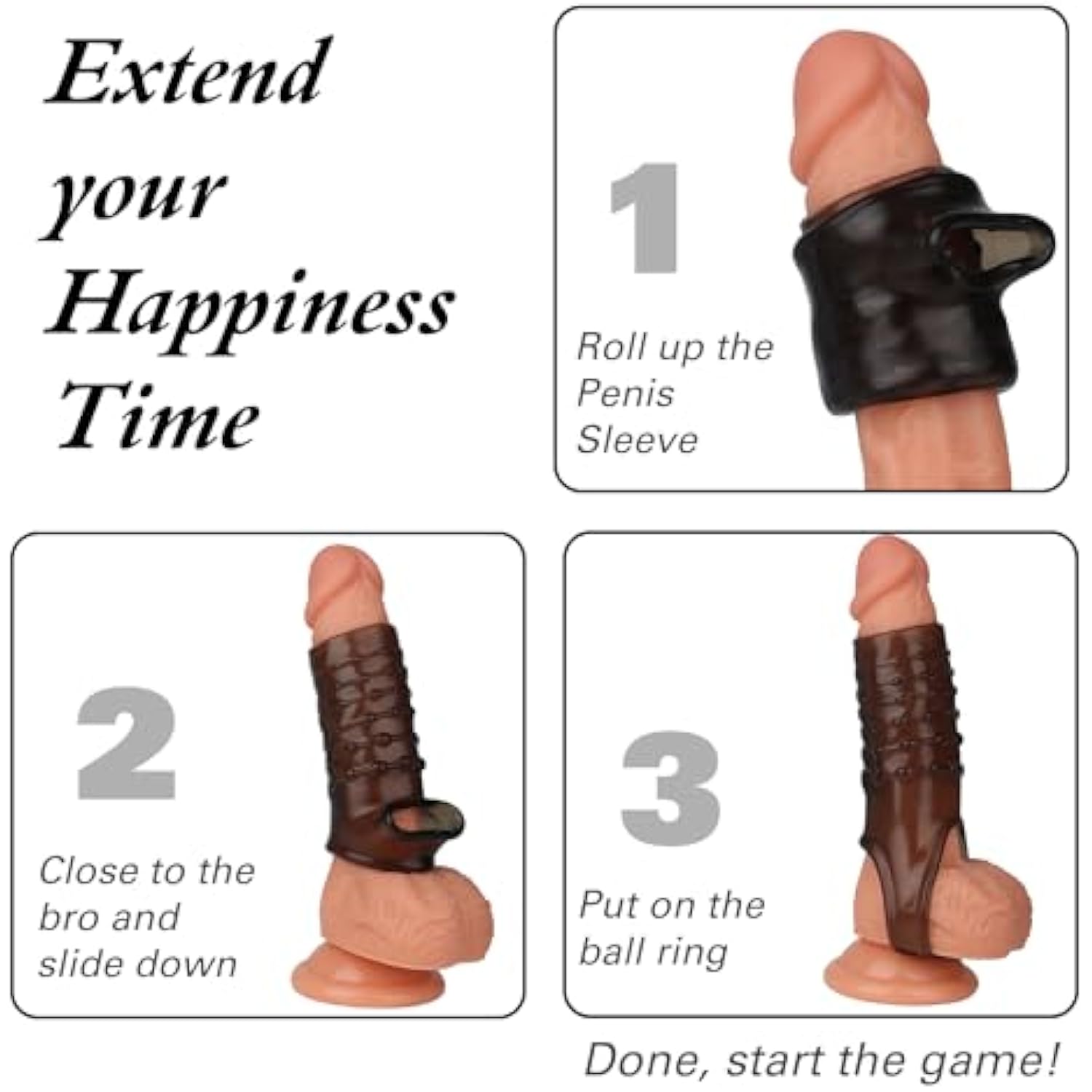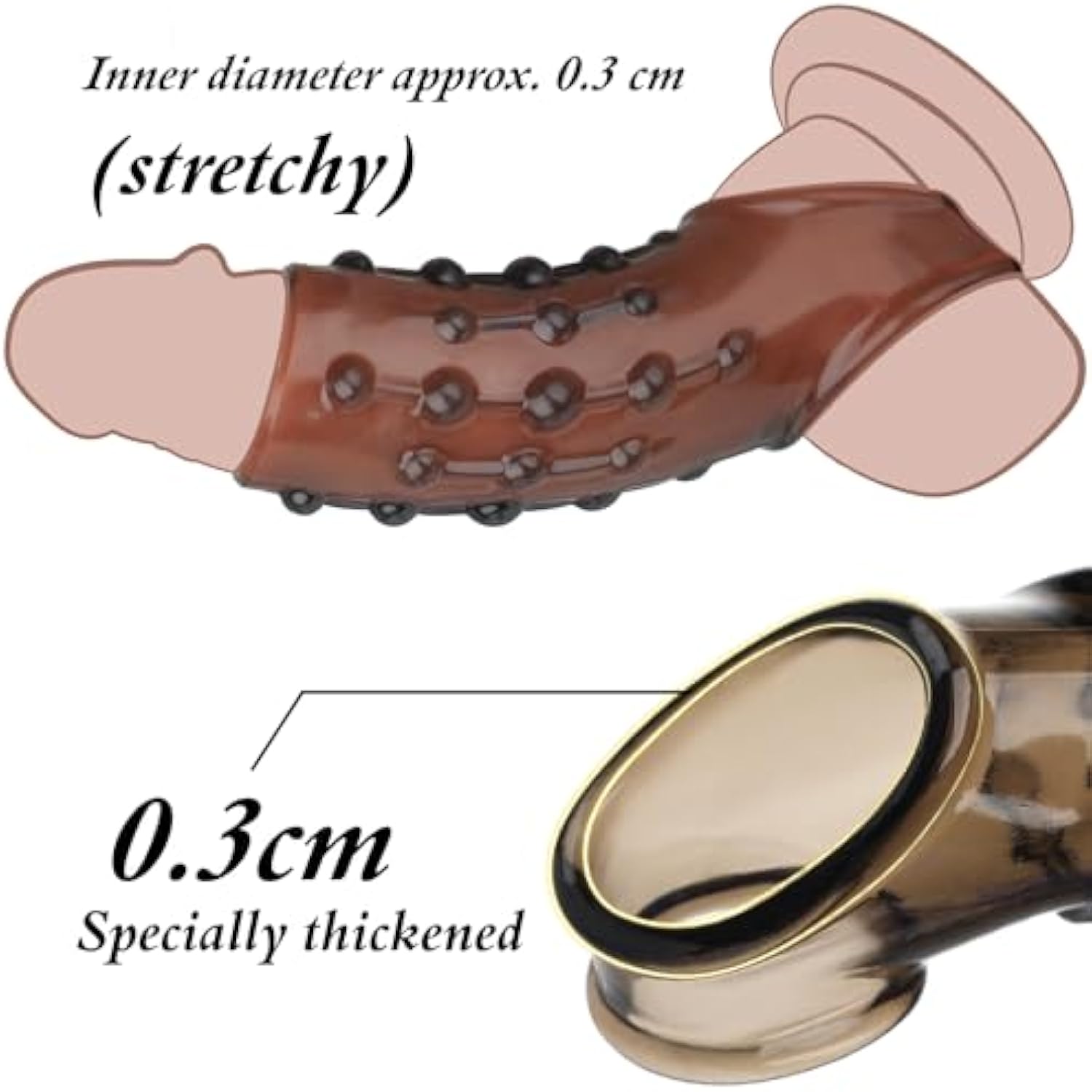Reusable Penis Sleeve For Men, Ultra-Soft Open Tip Cock Sleeve With Ball Stretcher Penis Ring Extender Enlargement Girth Enhancer, Delay Ejaculation, Body-Safe Material Male Sex Toys - Black